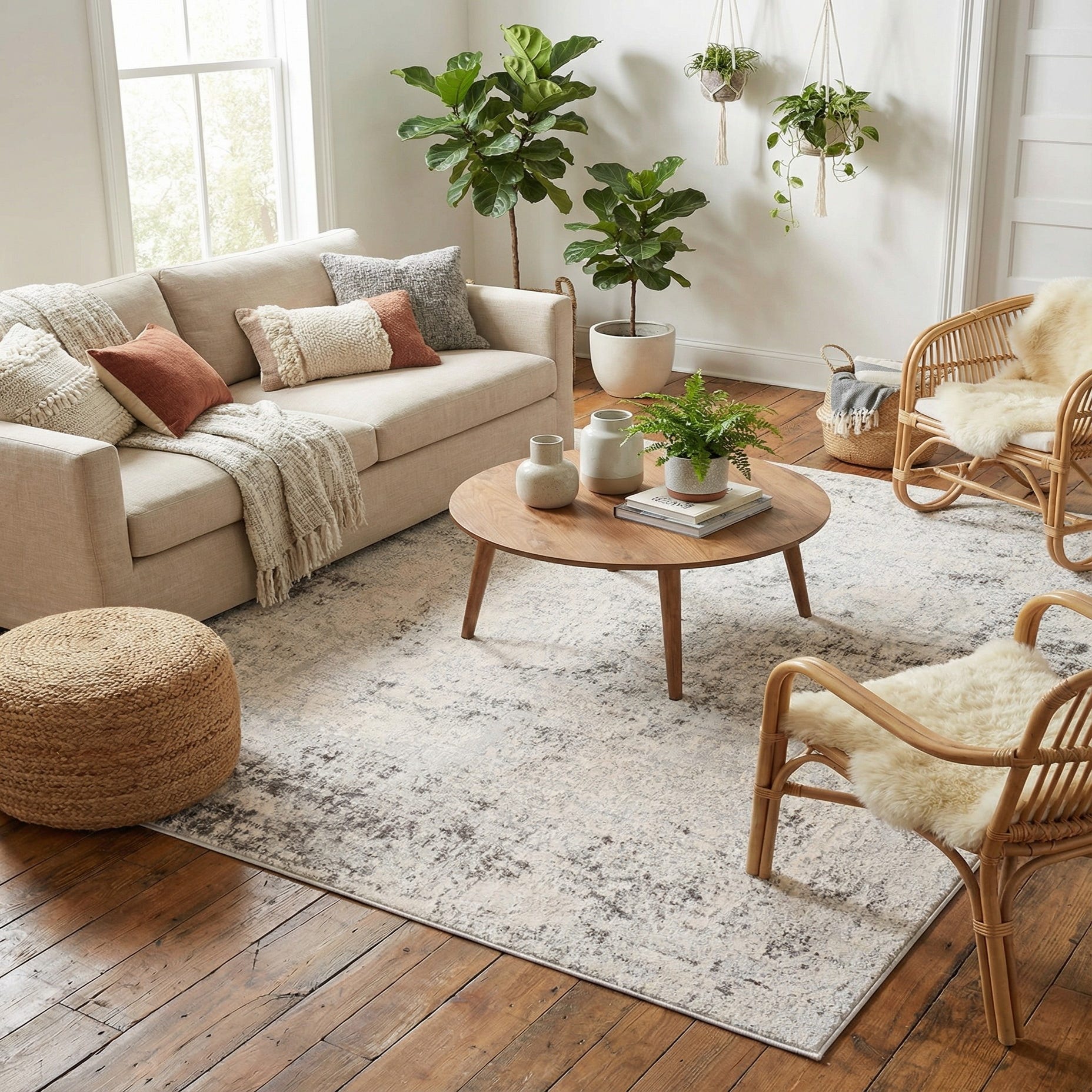 Primary color is Gray. Colors in this rug include: Gray, Ivory.