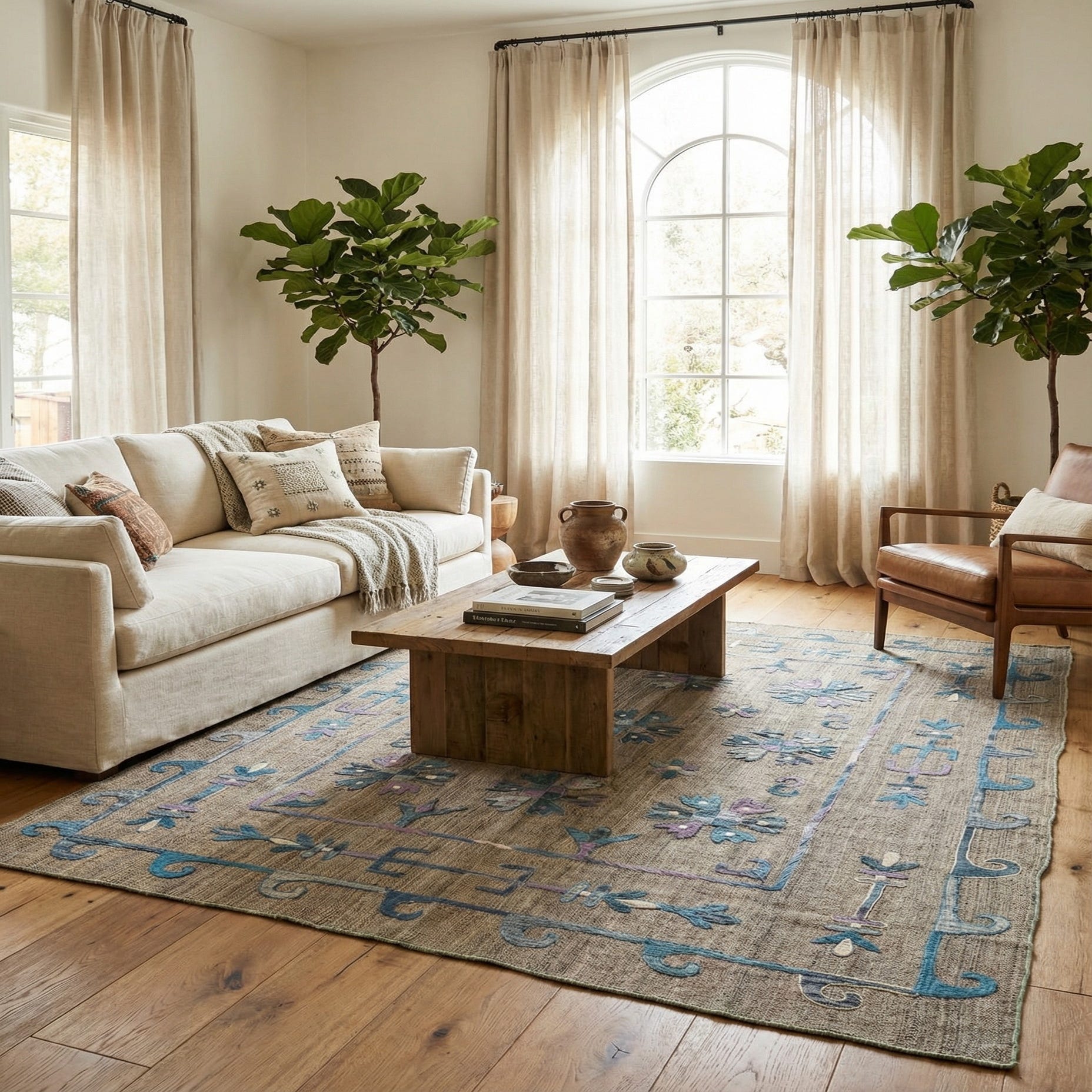 Detail image of 5' 3 x 6' 3  Hand Woven Kilim Suzani Wool Square Rug