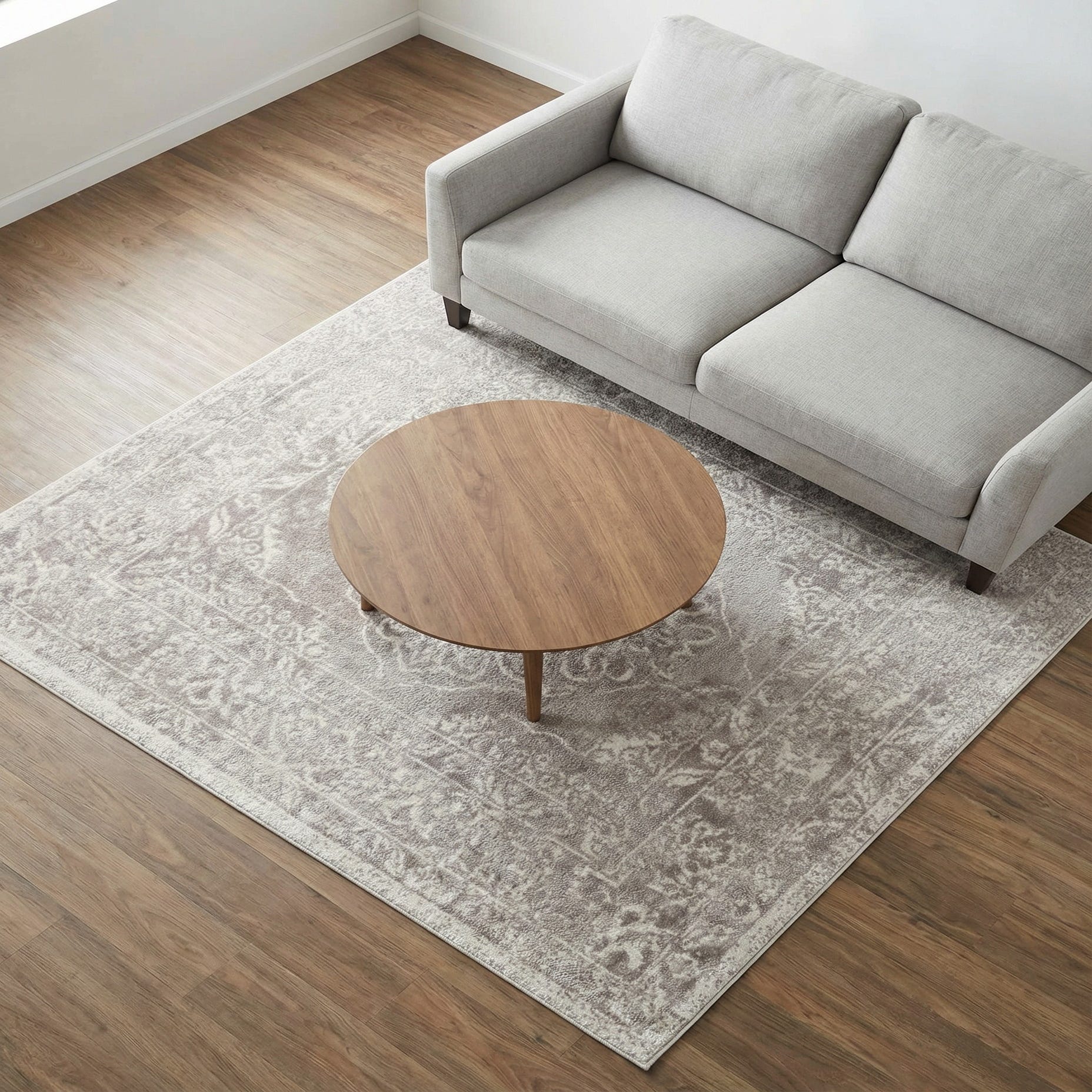 Primary color is Gray. Colors in this rug include: Gray, Ivory.