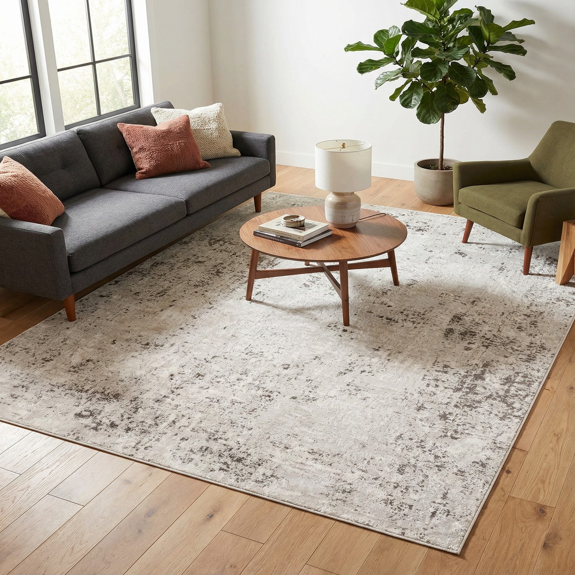 Primary color is Gray. Colors in this rug include: Gray, Ivory, Silver.