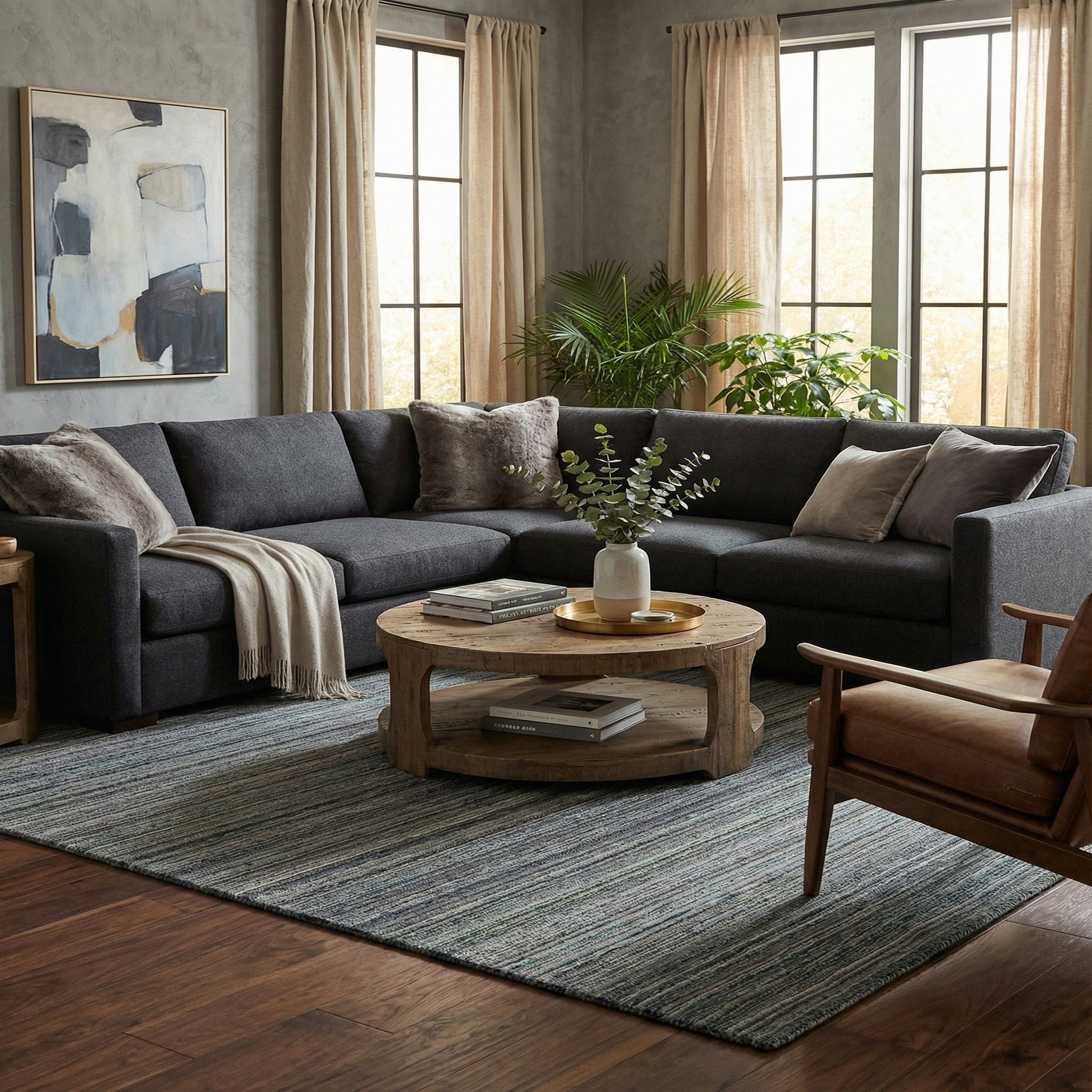 Primary color is Gray. Colors in this rug include: Gray, Black, Green, Ivory.