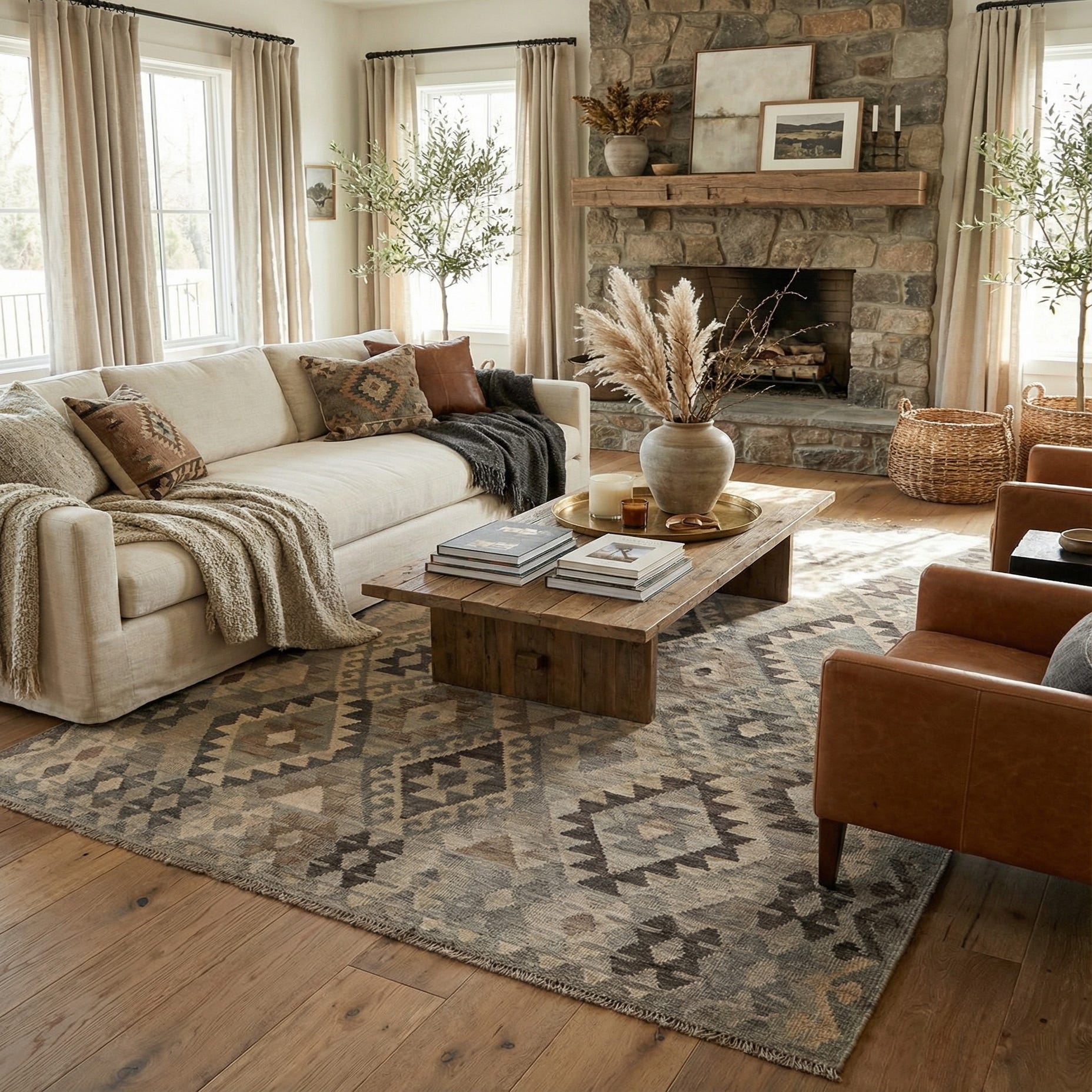 5' 10 x 7' 11 Hand Woven Kilim Maymana Wool Rug