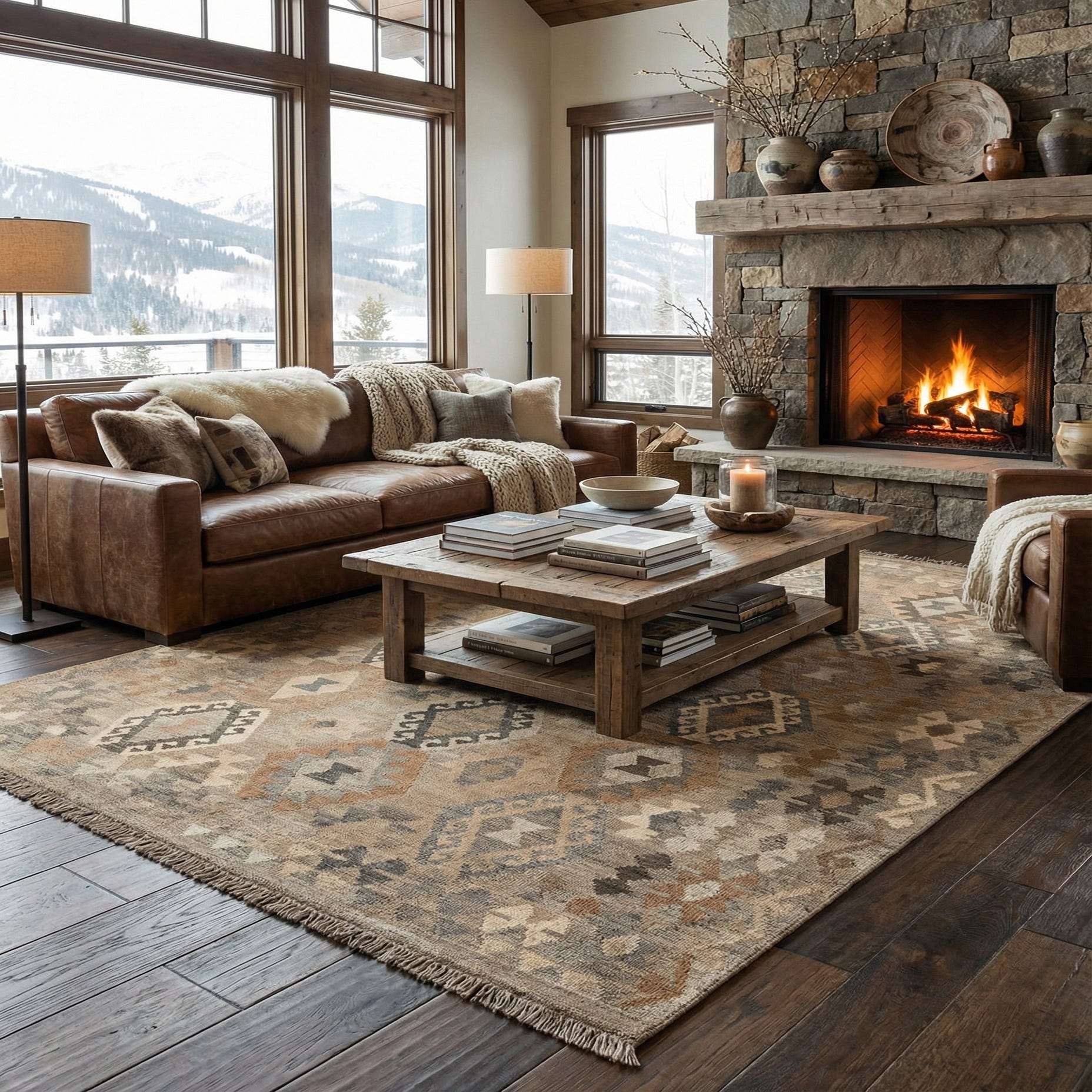 Primary color is Gray. Colors in this rug include: Gray, Beige, Brown, Light Brown.