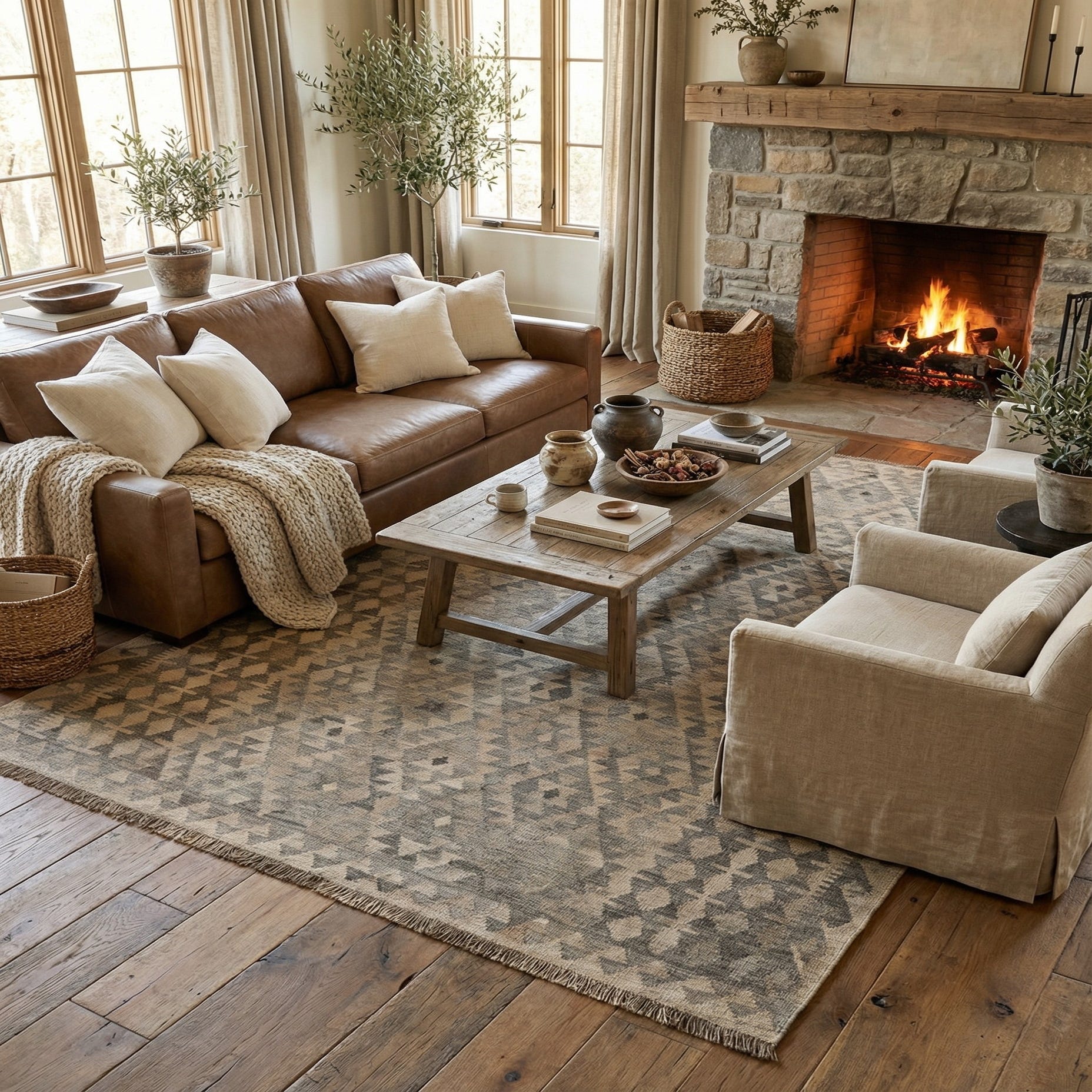 Primary color is Gray. Colors in this rug include: Gray, Beige, Brown.