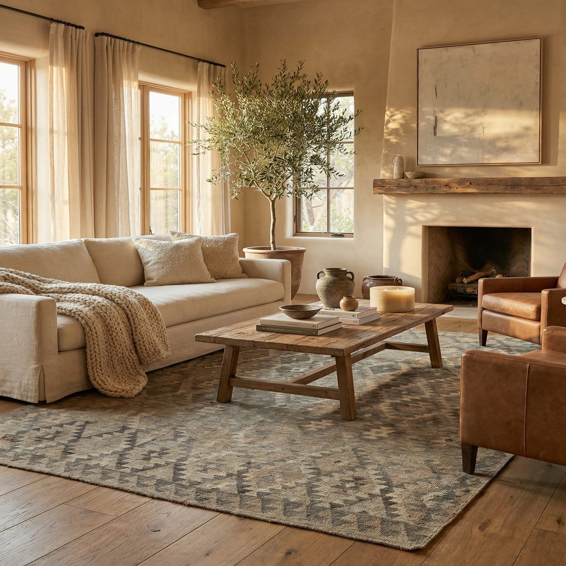 Primary color is Gray. Colors in this rug include: Gray, Beige, Brown, Light Brown.