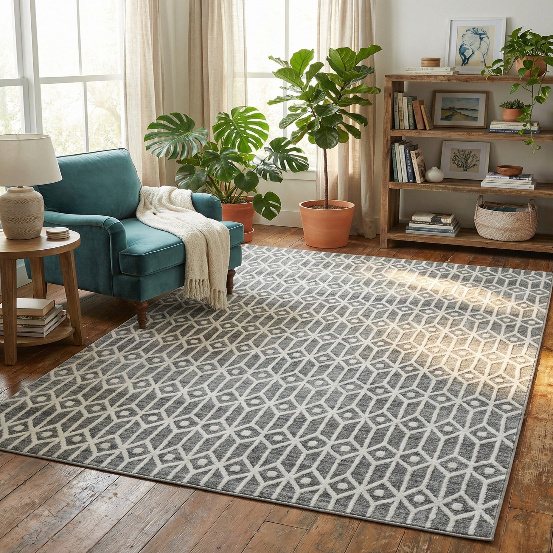 Primary color is Gray. Colors in this rug include: Gray, Ivory.