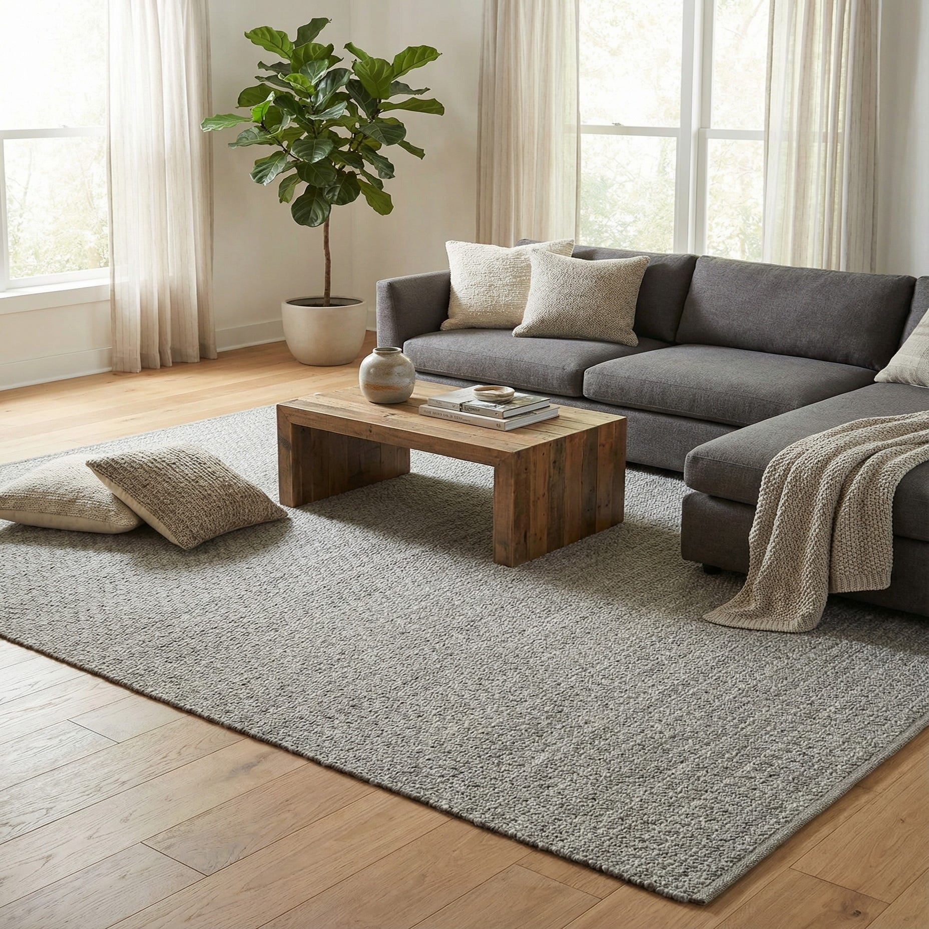 Primary color is Gray. Colors in this rug include: Gray, Ivory.