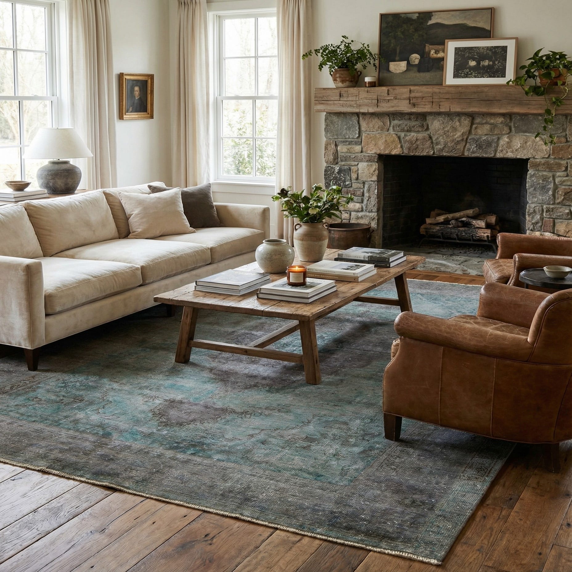 This Persian Ultra Vintage rug is an antique Persian Rug that has been washed, over-dyed, and then shaved down to a low pile. Look at the detail pictures to fully appreciate the uniqueness of this piece.