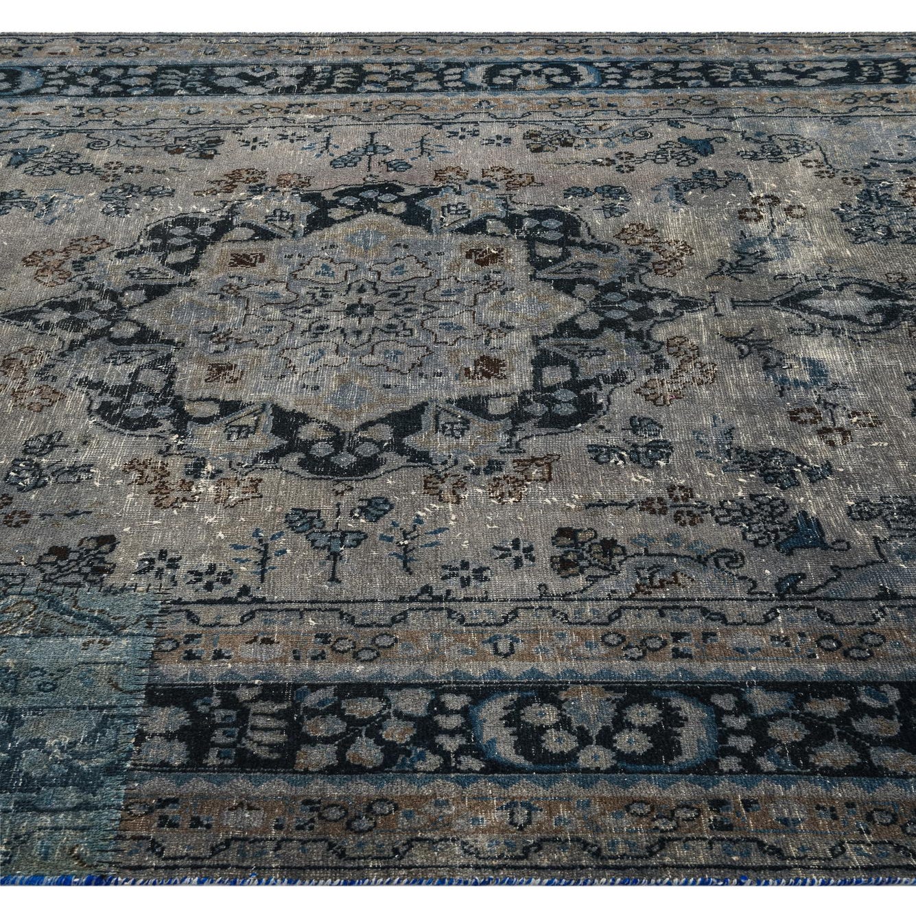 This Persian Ultra Vintage rug is an antique Persian Rug that has been washed, over-dyed, and then shaved down to a low pile. Look at the detail pictures to fully appreciate the uniqueness of this piece.