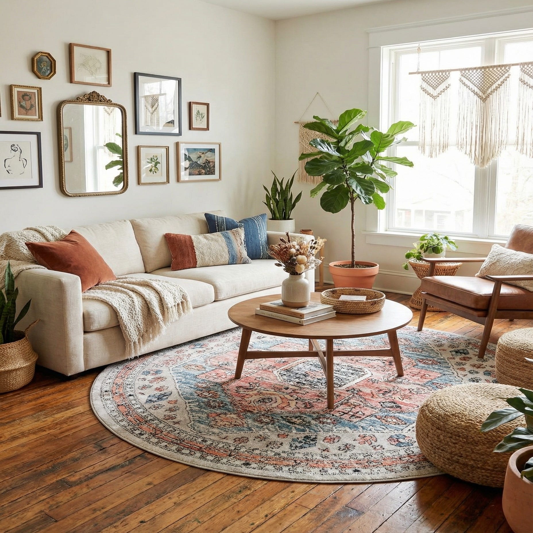Primary color is Gray. Colors in this rug include: Gray, Black, Blue, Ivory, Terracotta, Rust Red.
