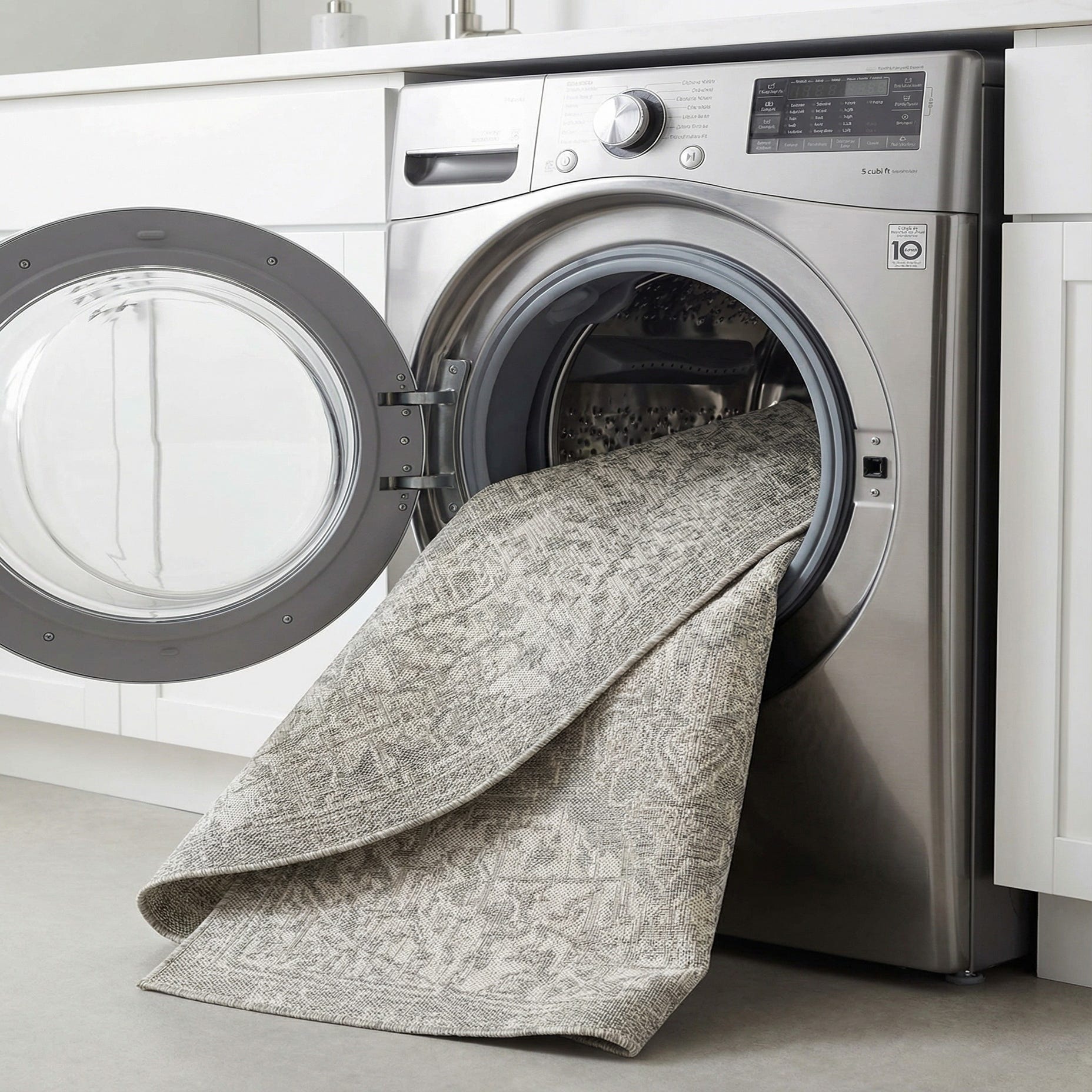 Primary color is Gray. Colors in this rug include: Gray, Ivory.