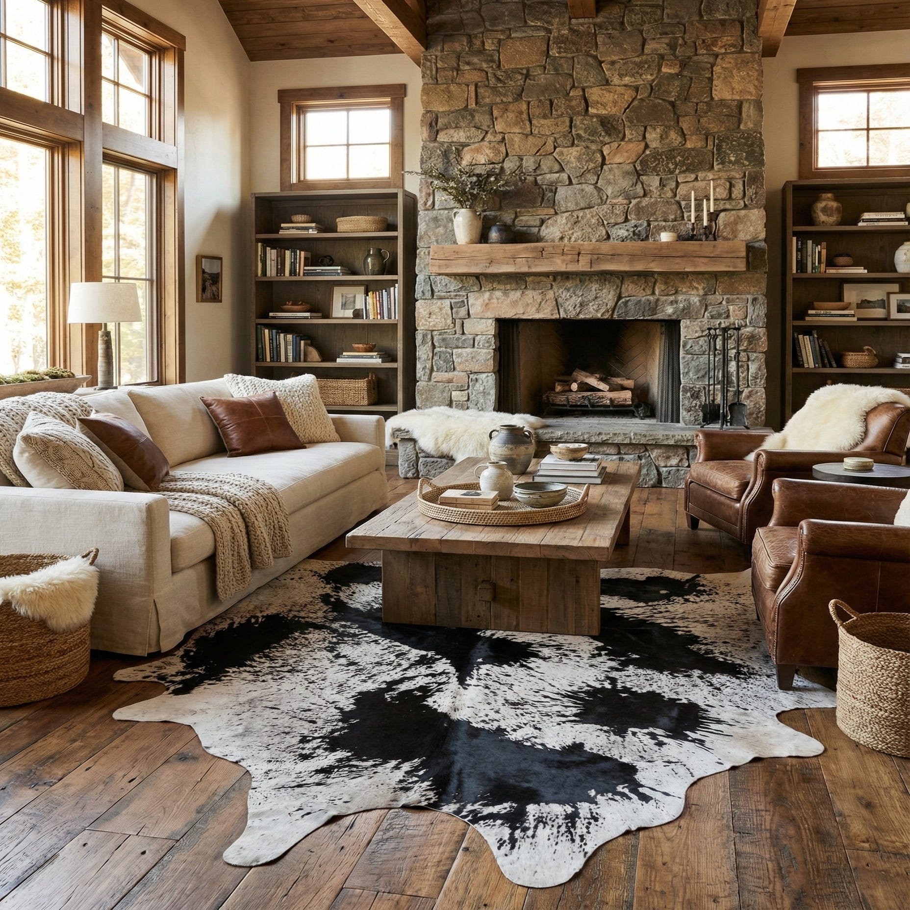 7' 5 x 7' 8 Cowhide Leather Square Rug