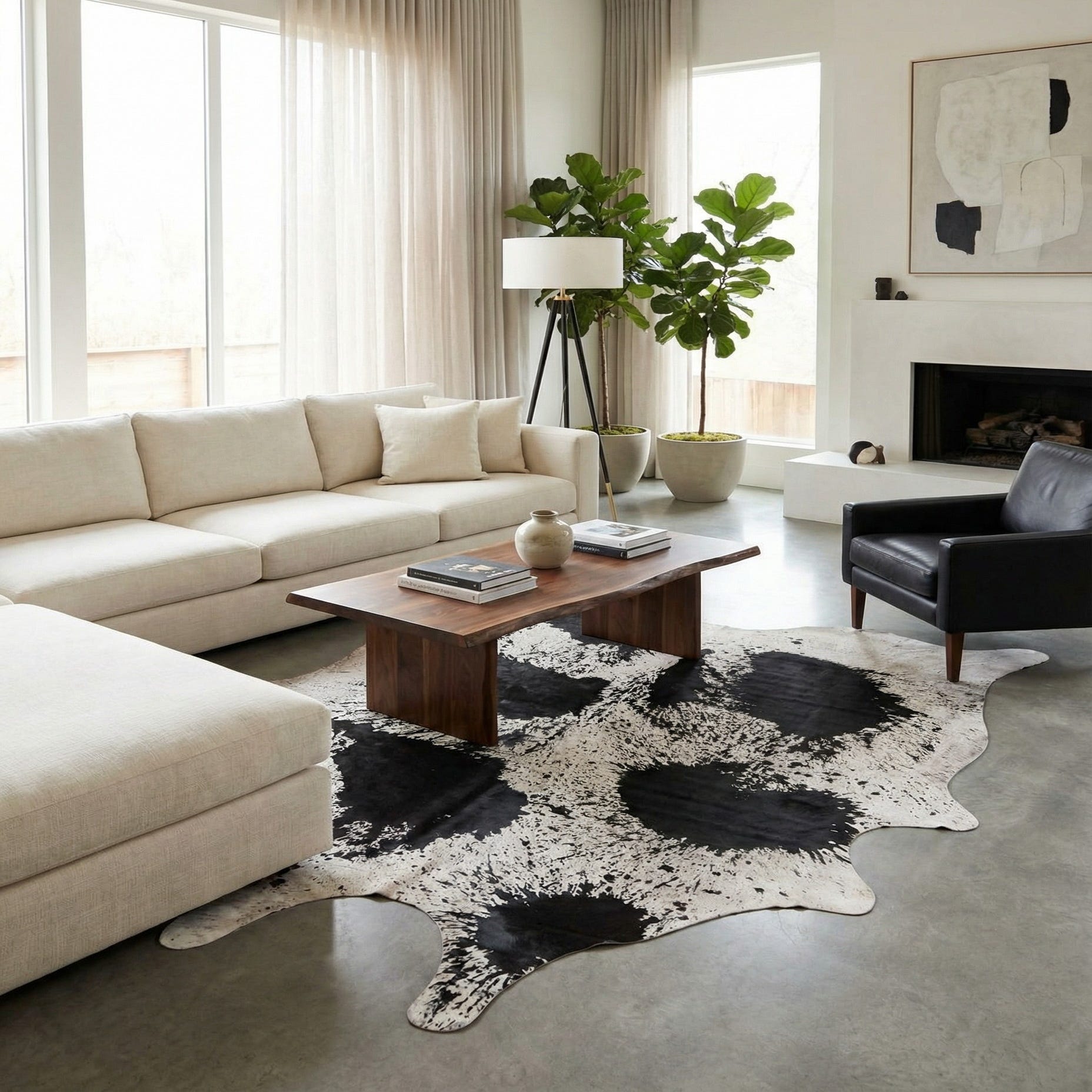 7' 4 x 8' Cowhide Leather Rug