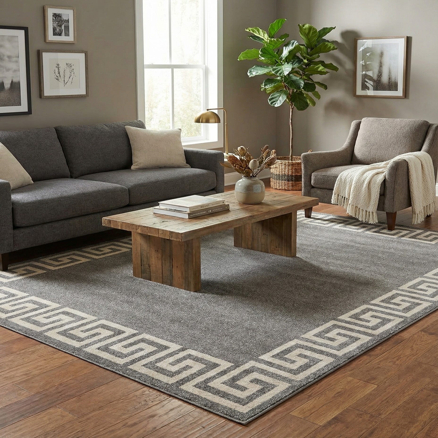 Primary color is Gray. Colors in this rug include: Gray, Beige.