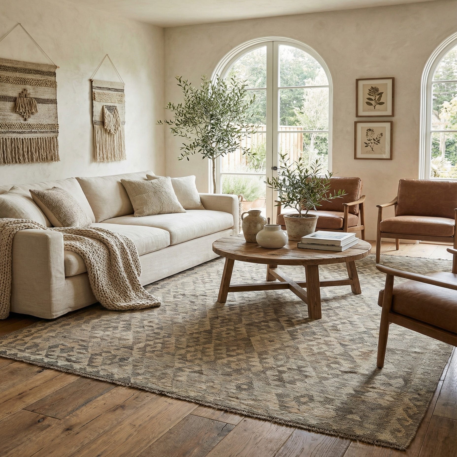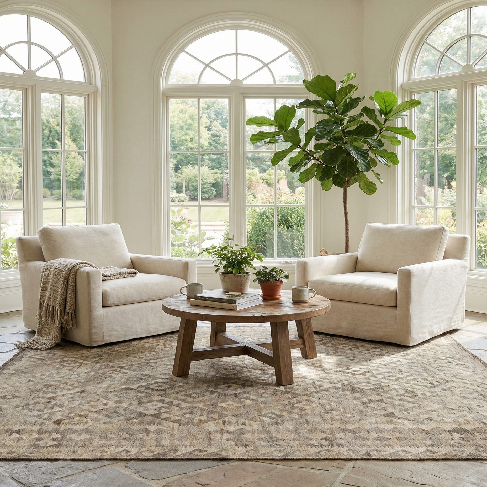 Primary color is Gray. Colors in this rug include: Gray, Beige, Brown.