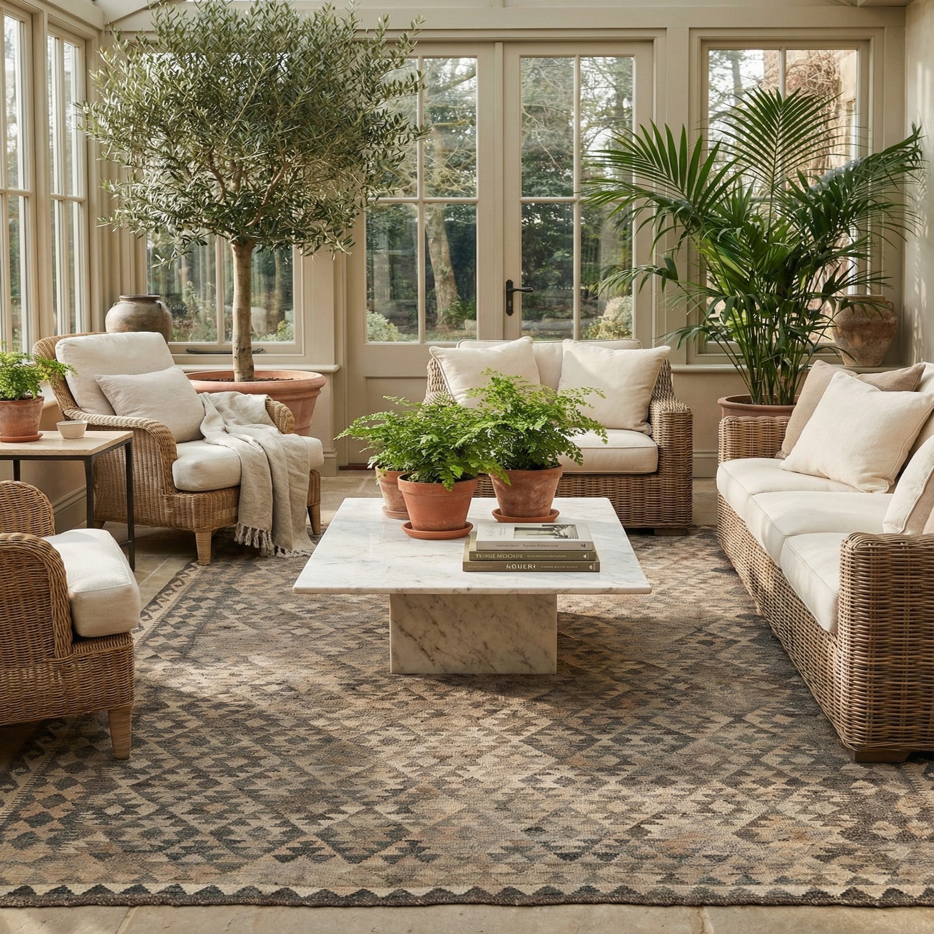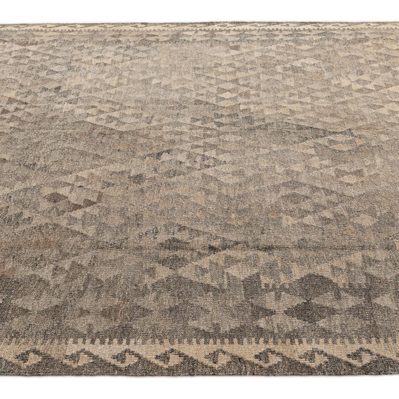 6' 9 x 9' 8 Hand Woven Kilim Maymana Wool Rug