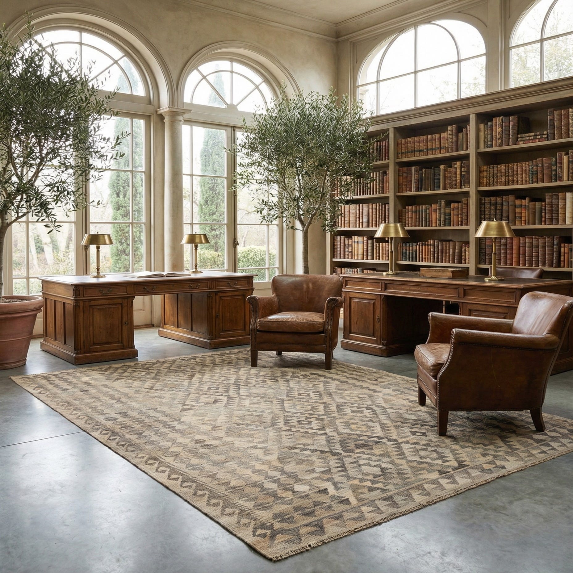 6' 9 x 9' 9 Hand Woven Kilim Maymana Wool Rug