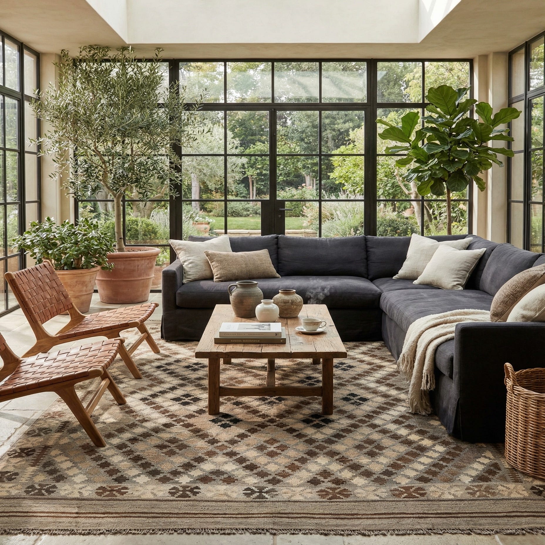 6' 7 x 9' 10 Hand Woven Kilim Maymana Wool Rug