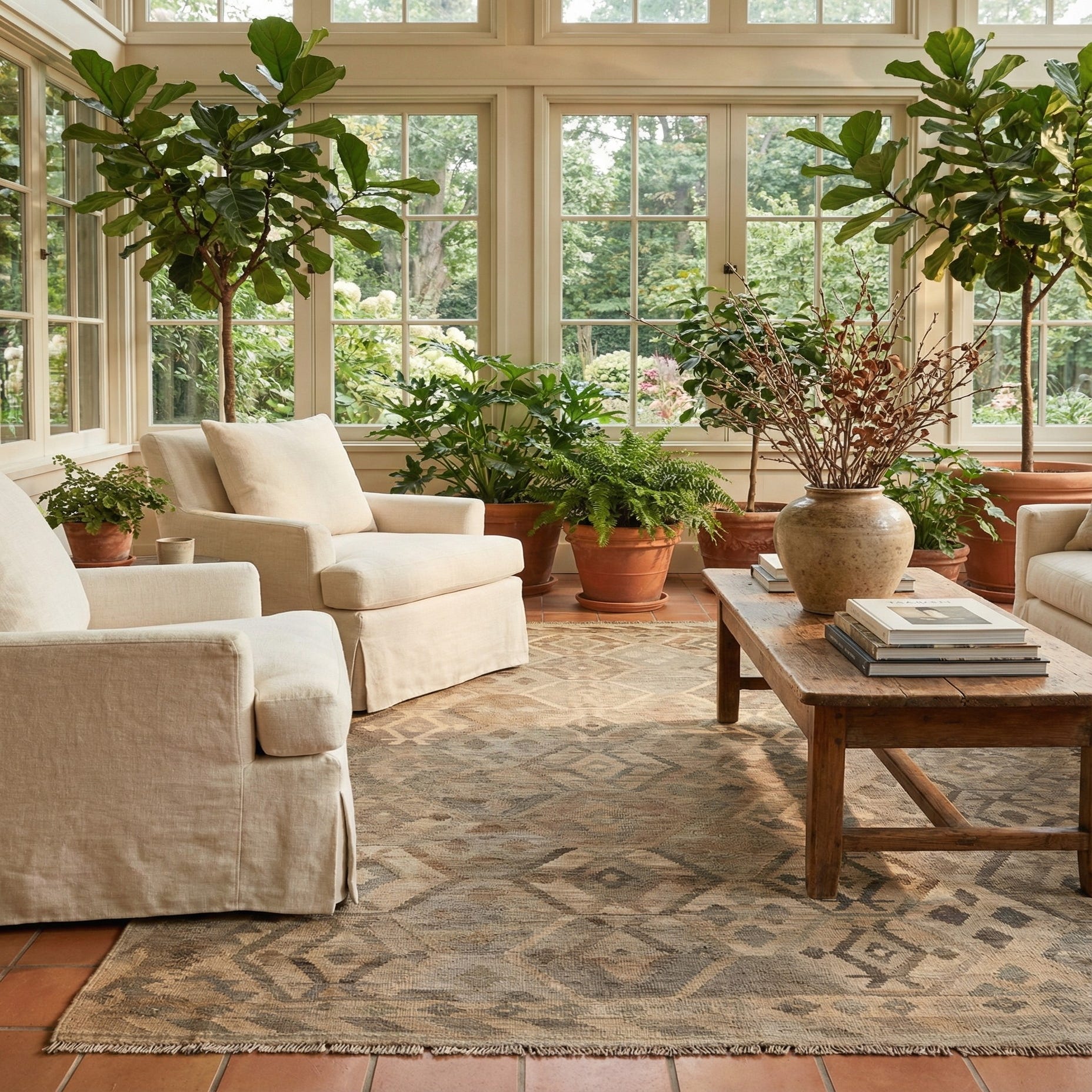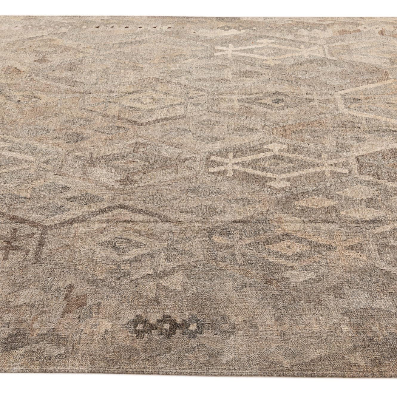 6' 9 x 9' 11 Hand Woven Kilim Maymana Wool Rug