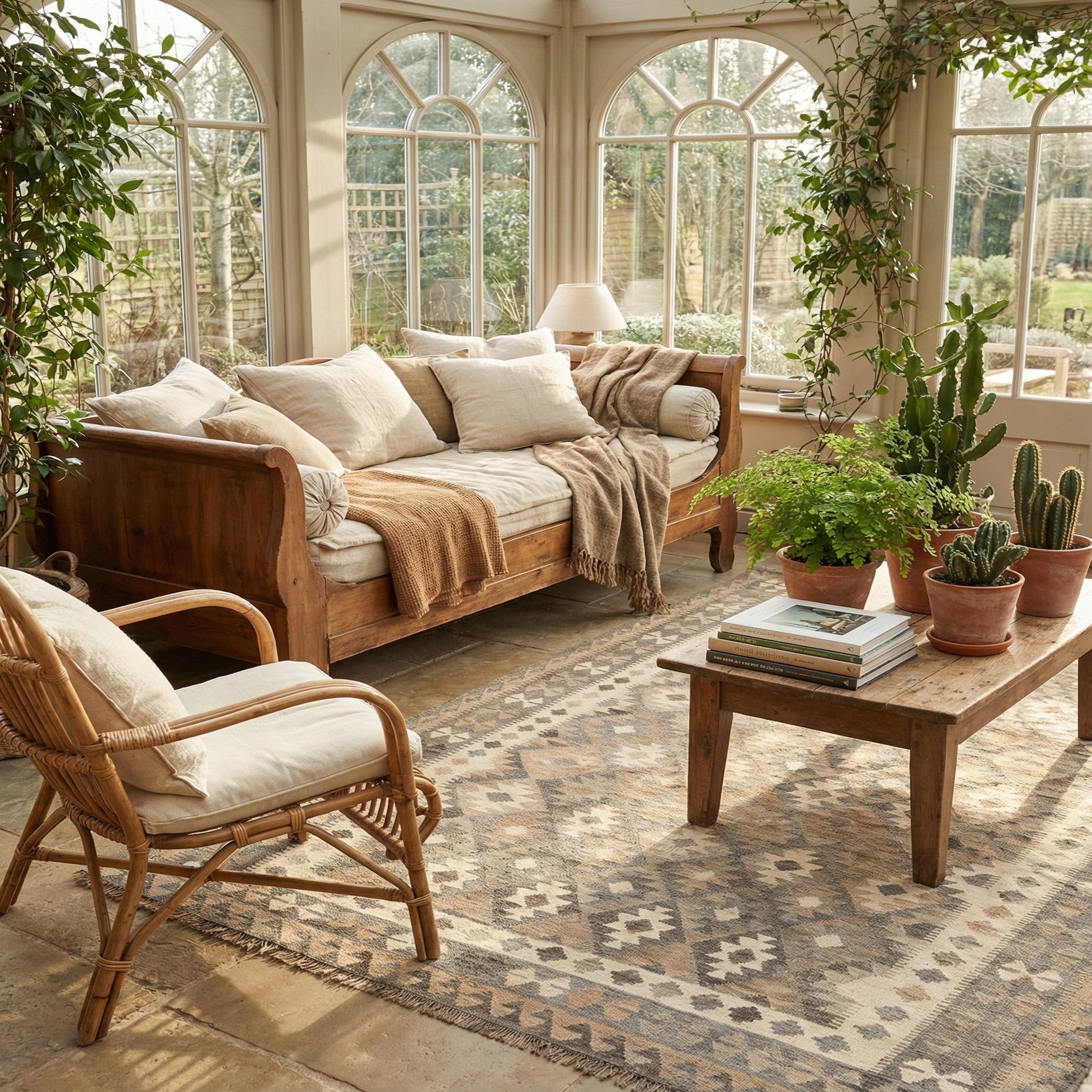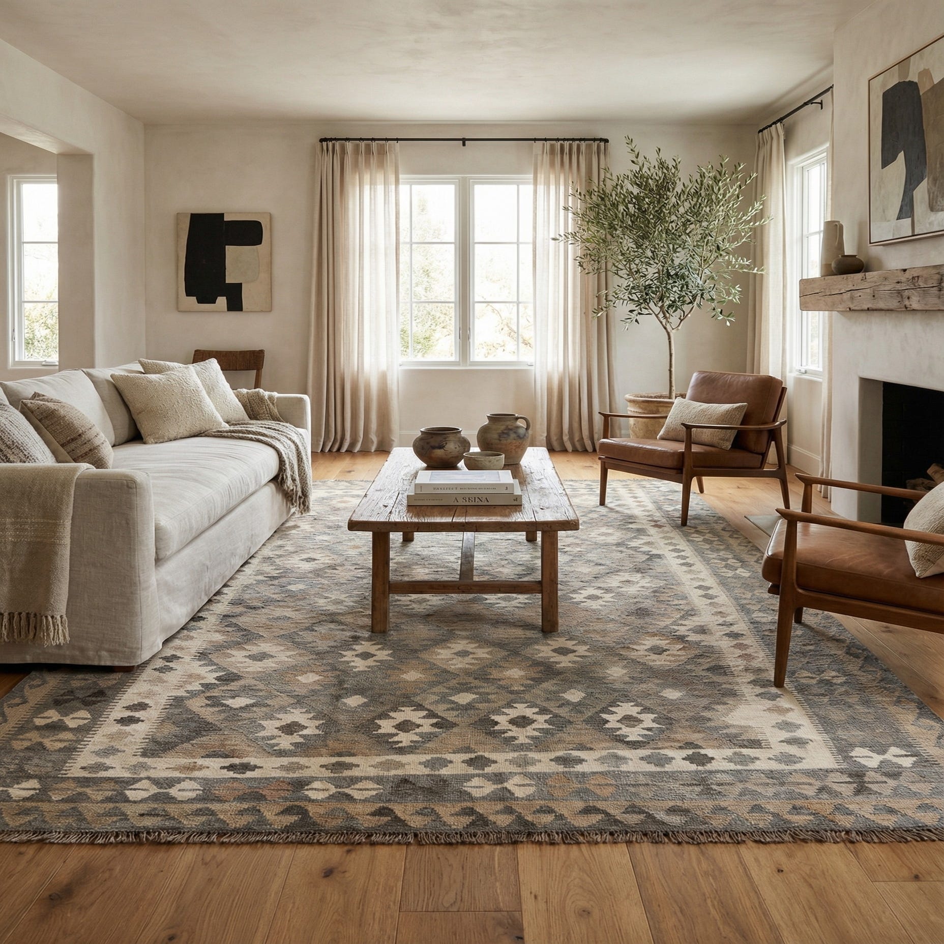 6' 7 x 9' 10 Hand Woven Kilim Maymana Wool Rug
