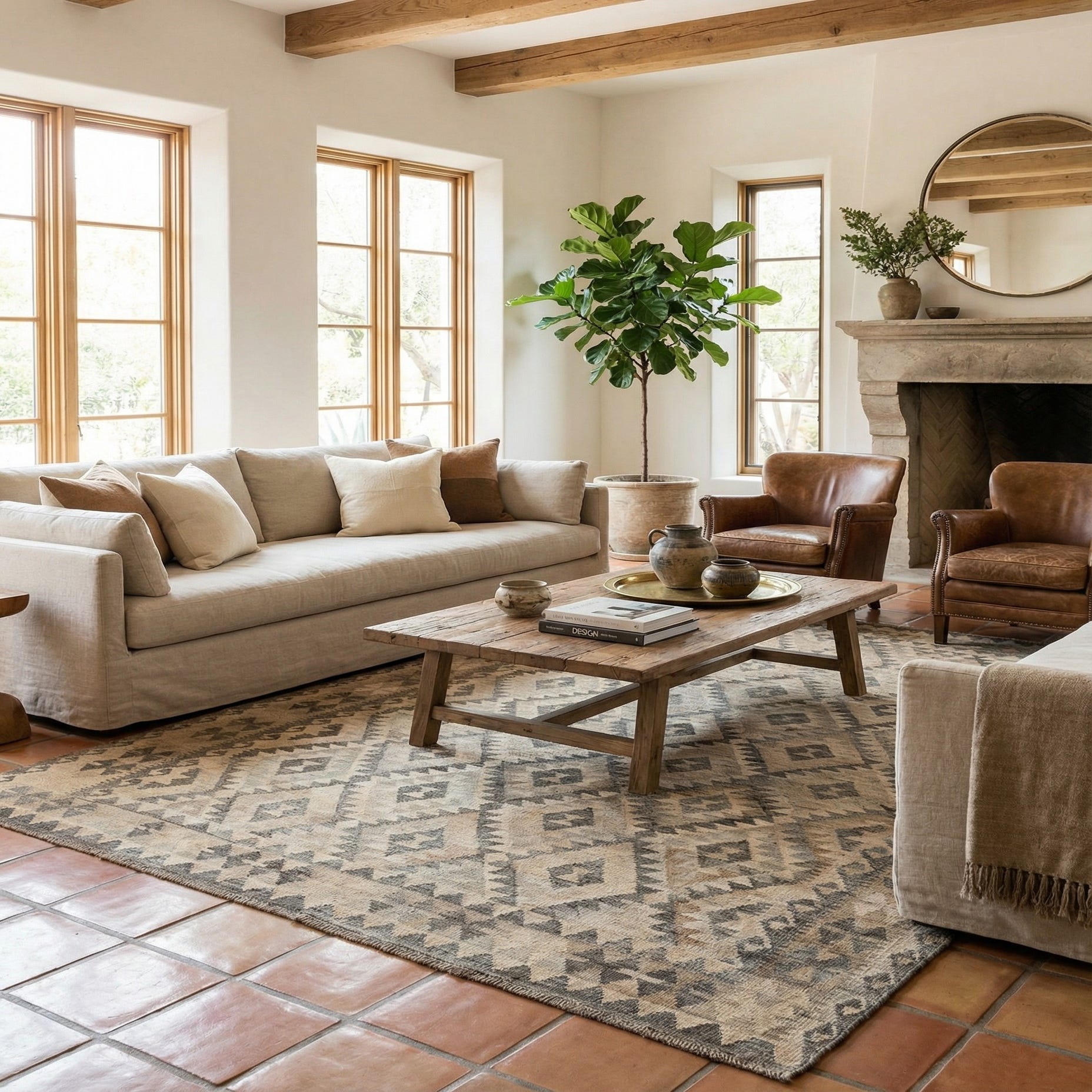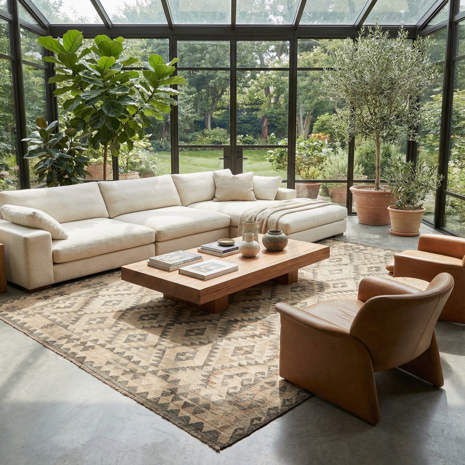 6' 11 x 9' 7 Hand Woven Kilim Maymana Wool Rug