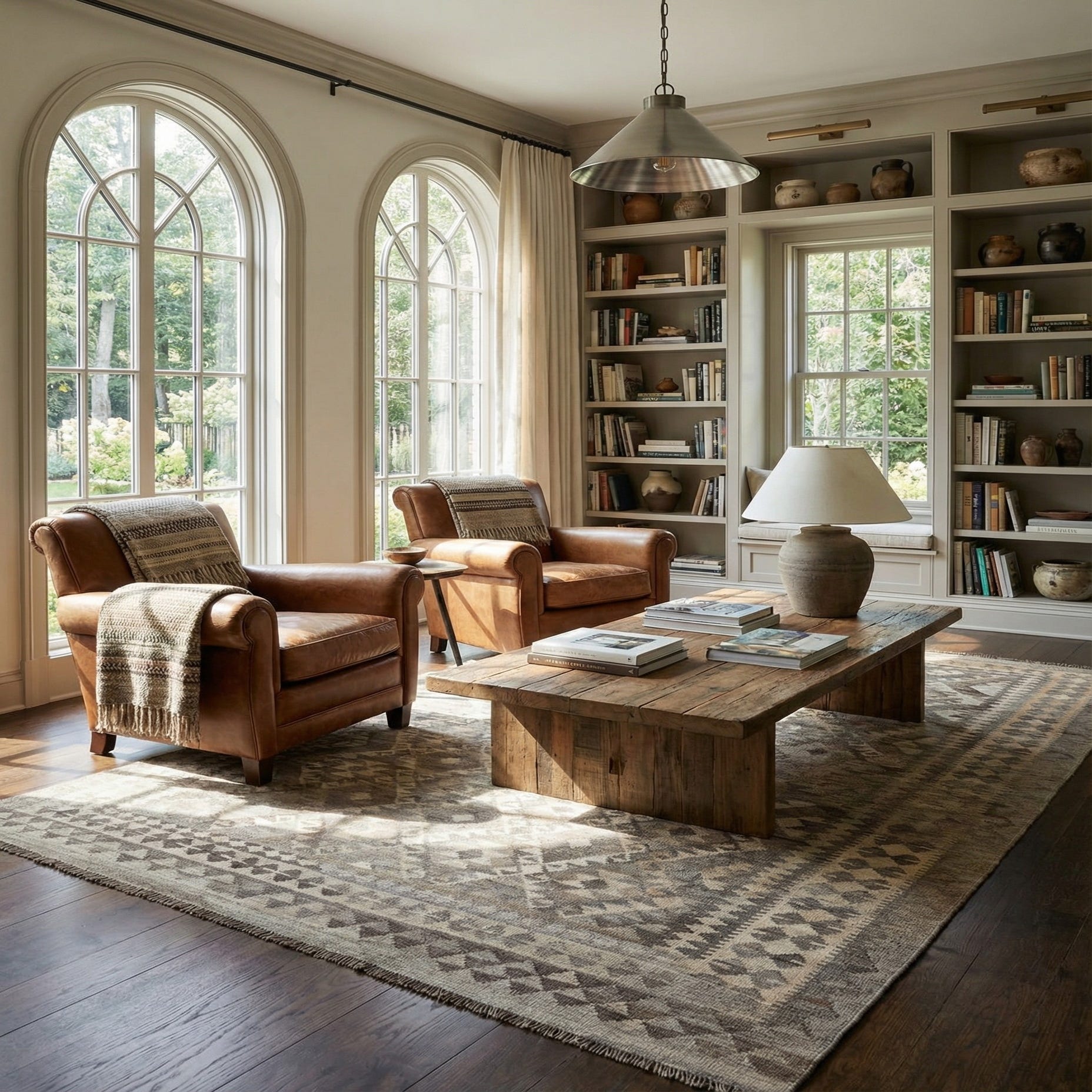 7' x 9' 8 Hand Woven Kilim Maymana Wool Rug