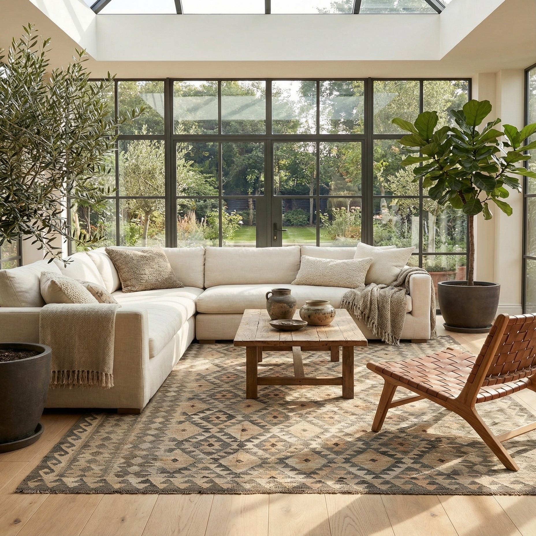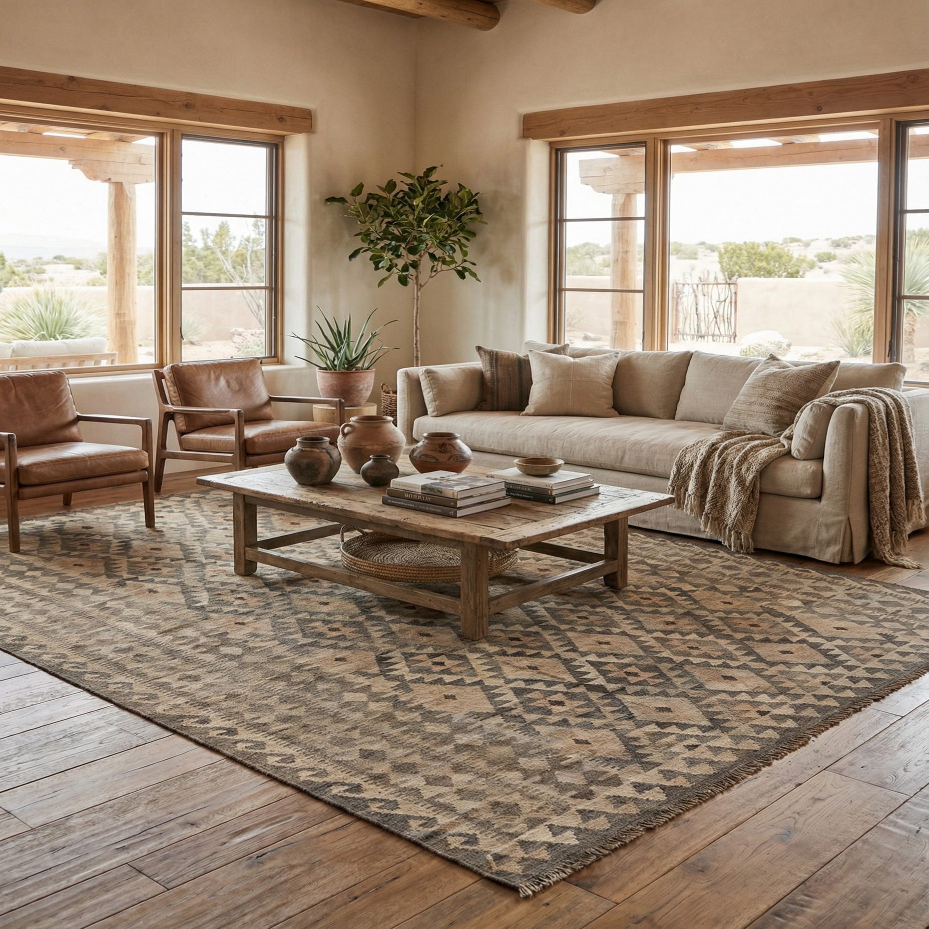 6' 11 x 9' 7 Hand Woven Kilim Maymana Wool Rug
