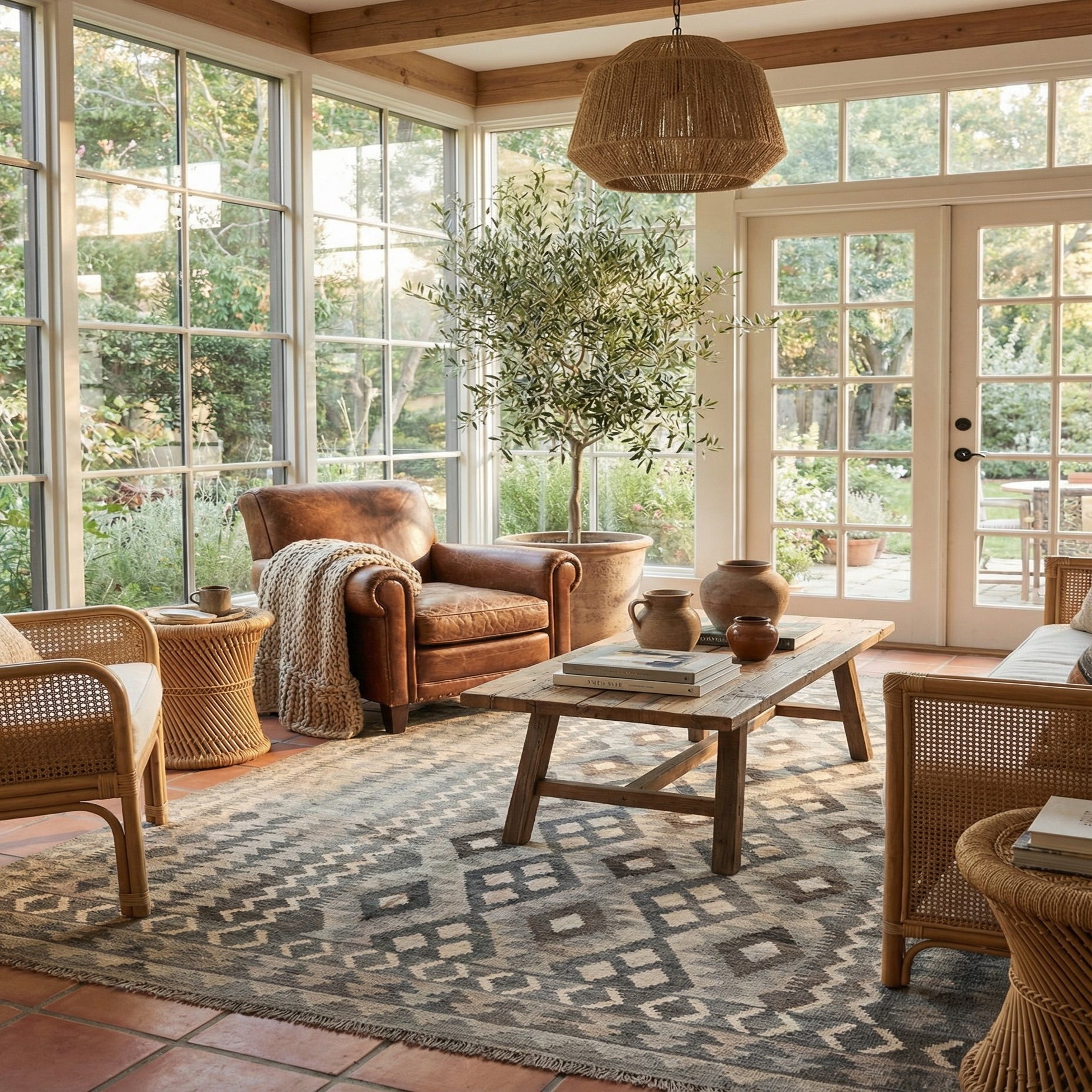 6' 10 x 9' 7 Hand Woven Kilim Maymana Wool Rug