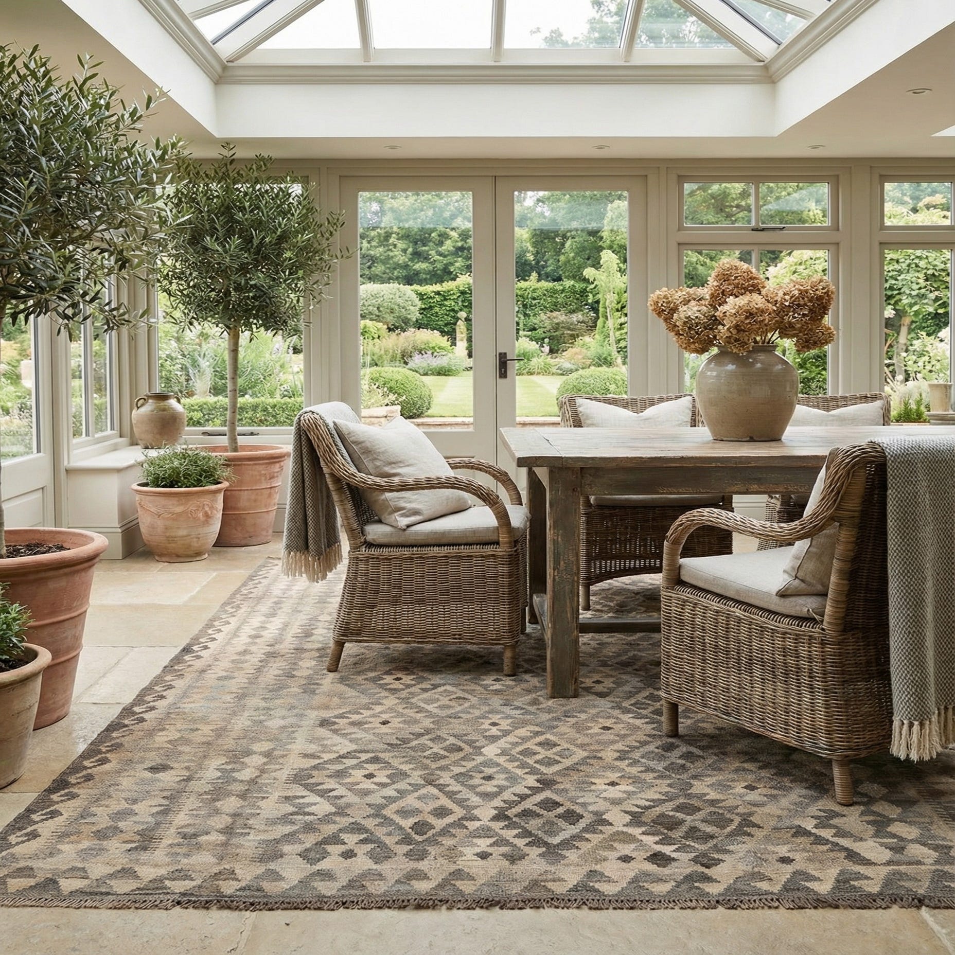 6' 11 x 9' 9 Hand Woven Kilim Maymana Wool Rug