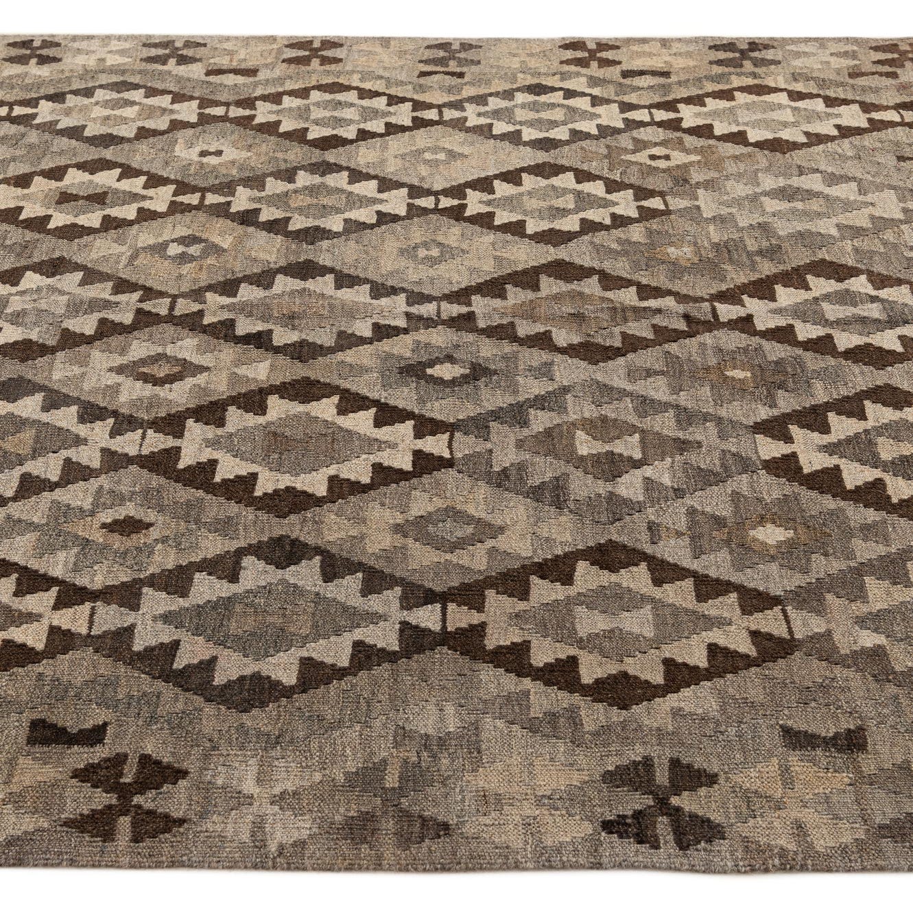 Primary color is Gray. Colors in this rug include: Gray, Brown, Light Brown, Beige.