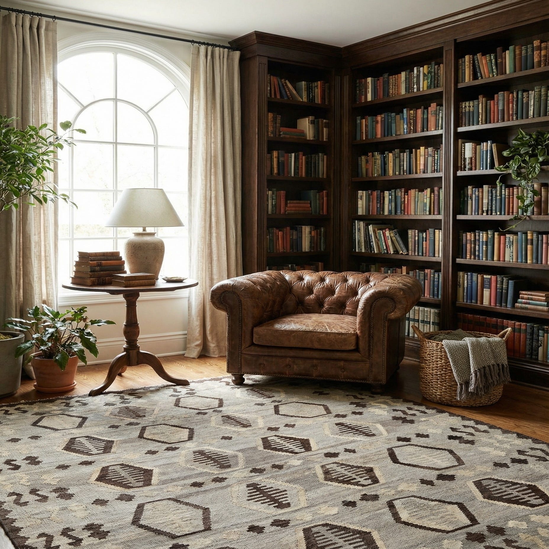 Primary color is Gray. Colors in this rug include: Gray, Beige, Brown.