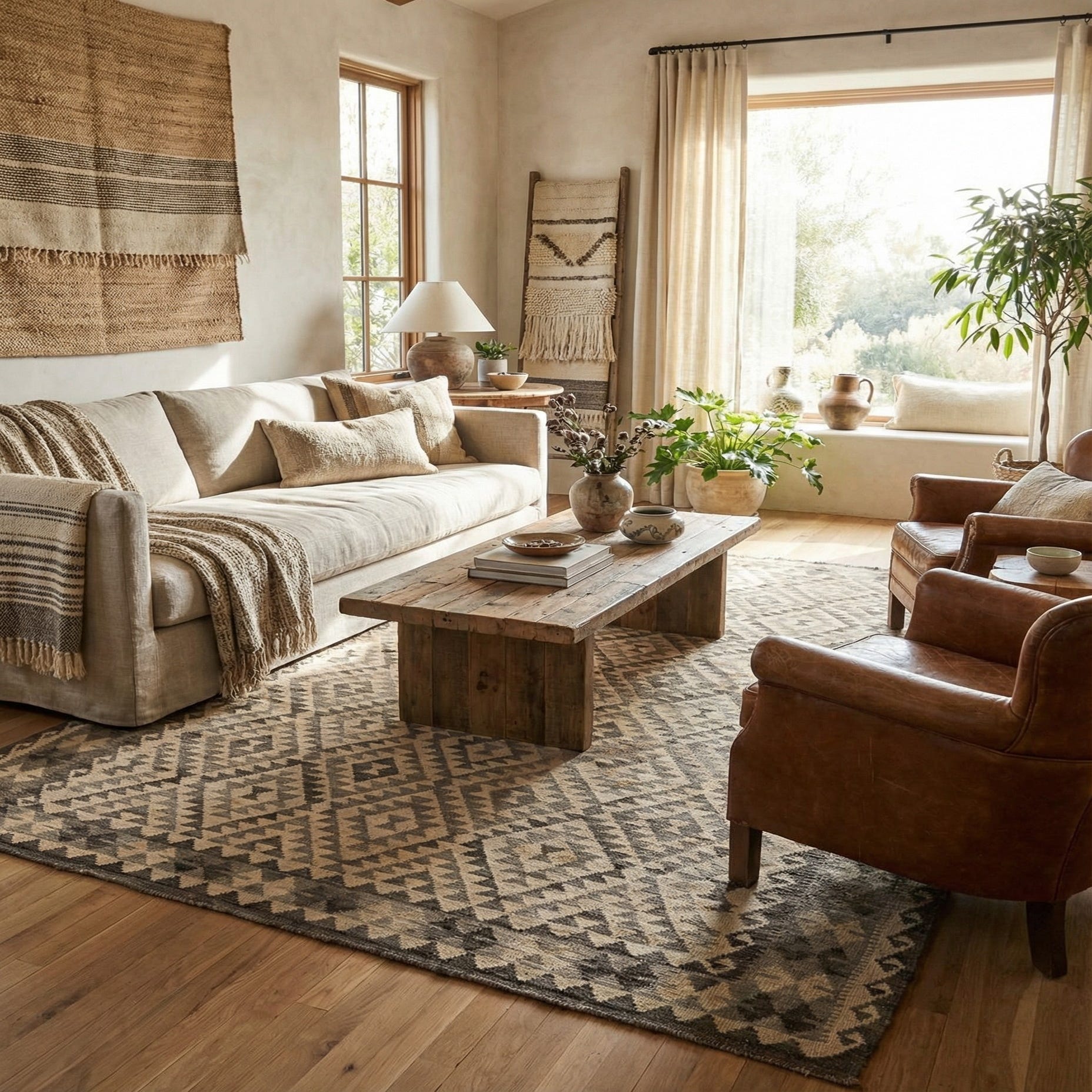 6' 11 x 9' 10 Hand Woven Kilim Maymana Wool Rug