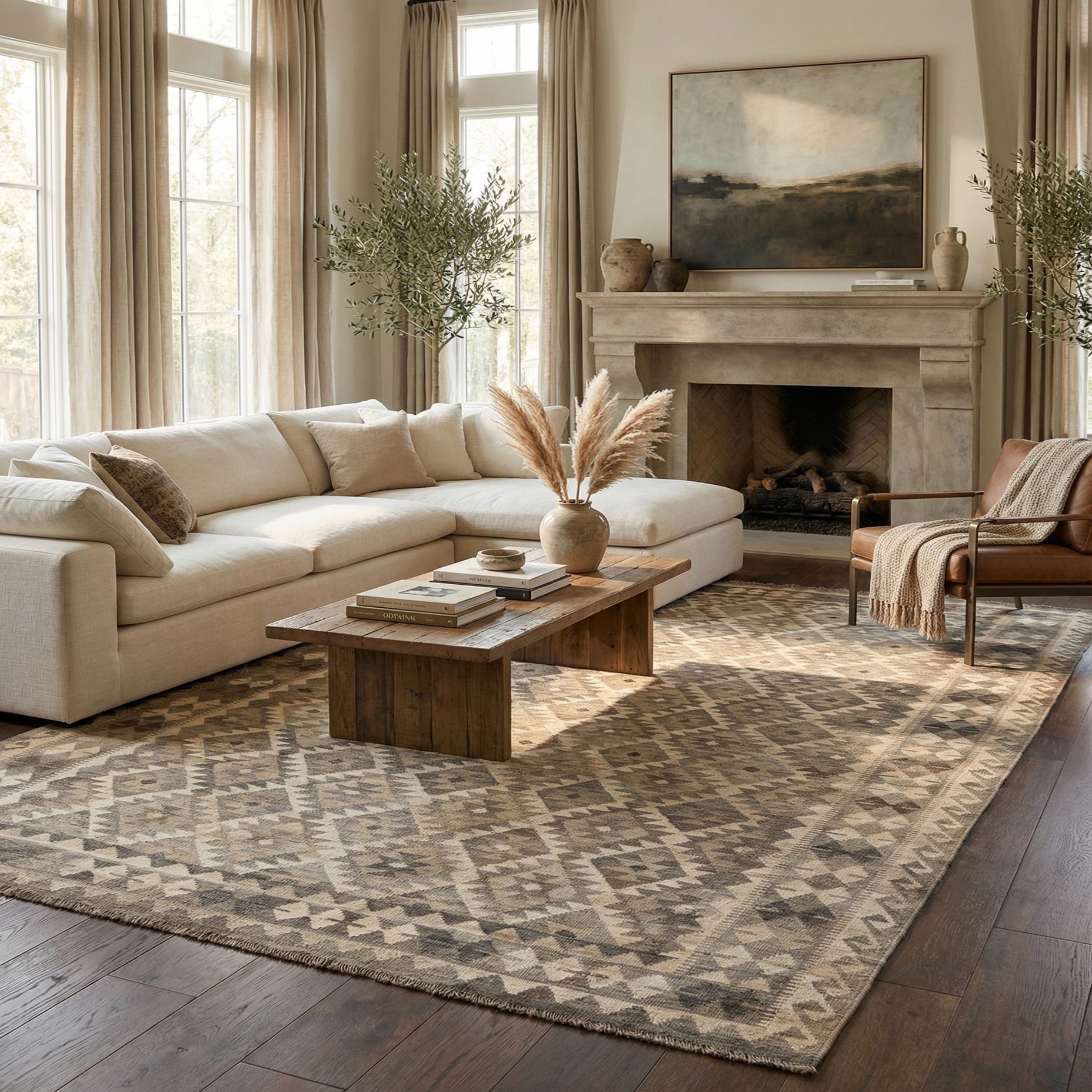6' 10 x 9' 10 Hand Woven Kilim Maymana Wool Rug