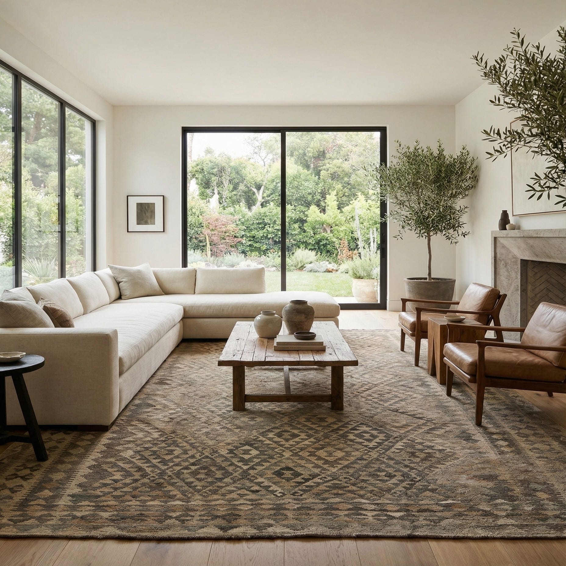 Detail image of 7' 3 x 10' 3  Hand Woven Kilim Maymana Wool Rug