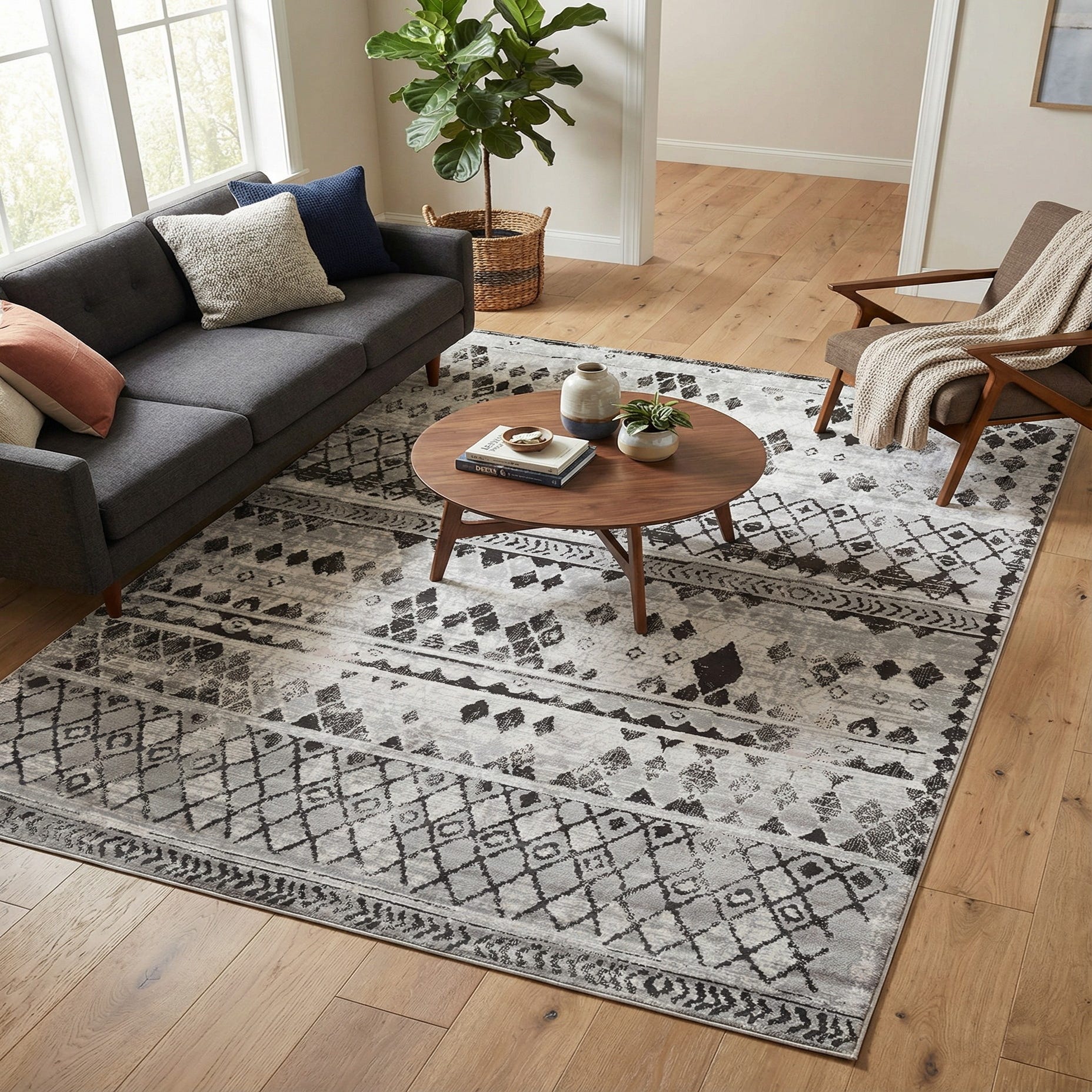 Primary color is Gray. Colors in this rug include: Gray, Ivory.