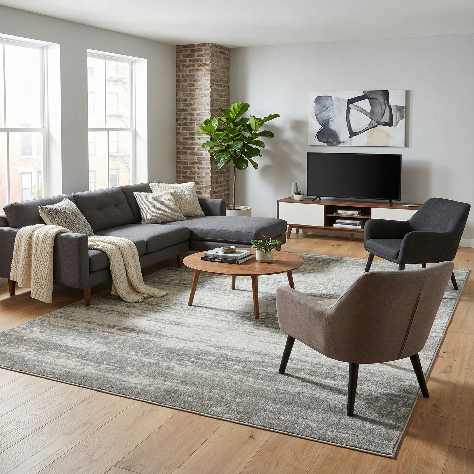 Primary color is Gray. Colors in this rug include: Gray, Beige.