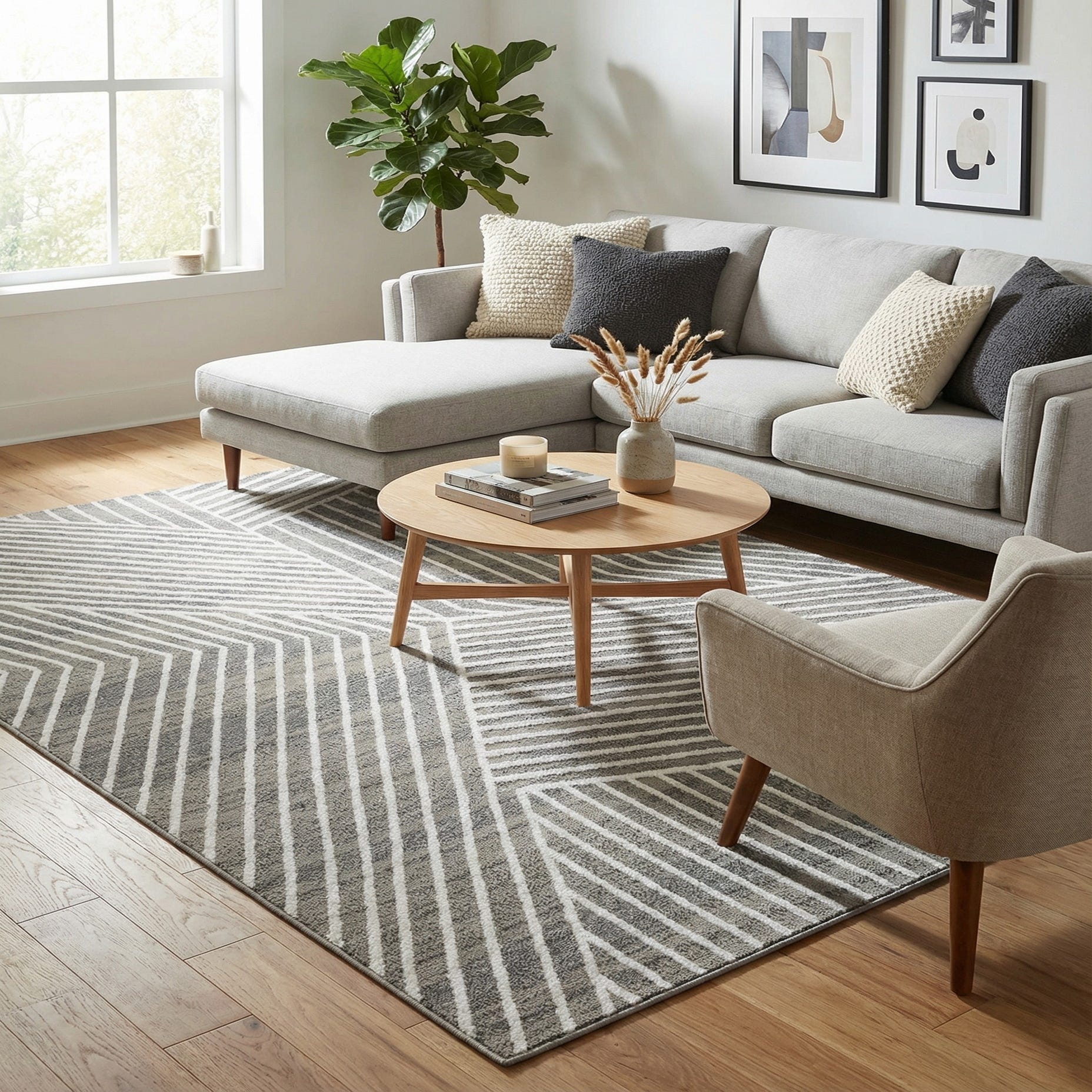 Primary color is Gray. Colors in this rug include: Gray, Ivory.