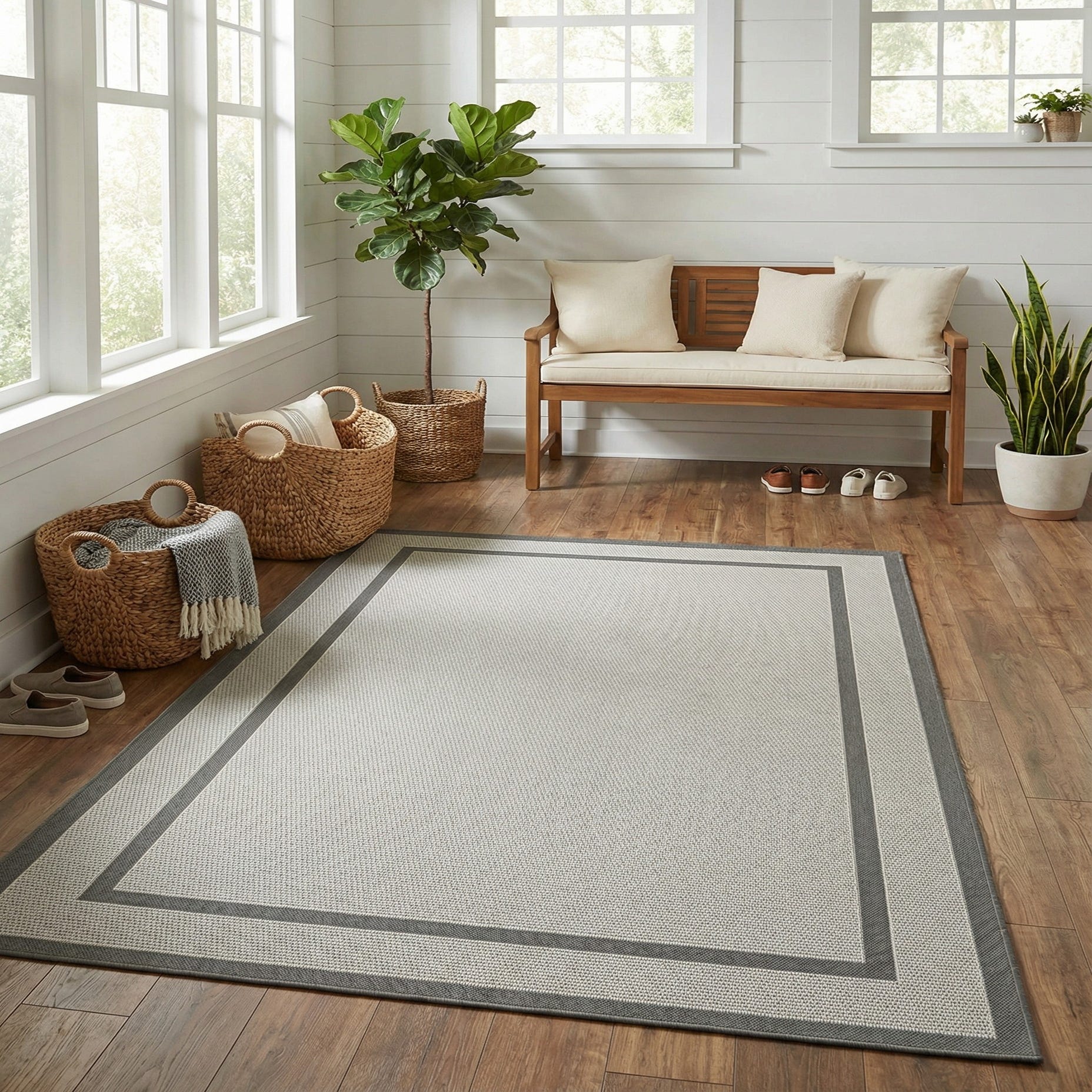 7' x 10' Washable Border Indoor / Outdoor Rug