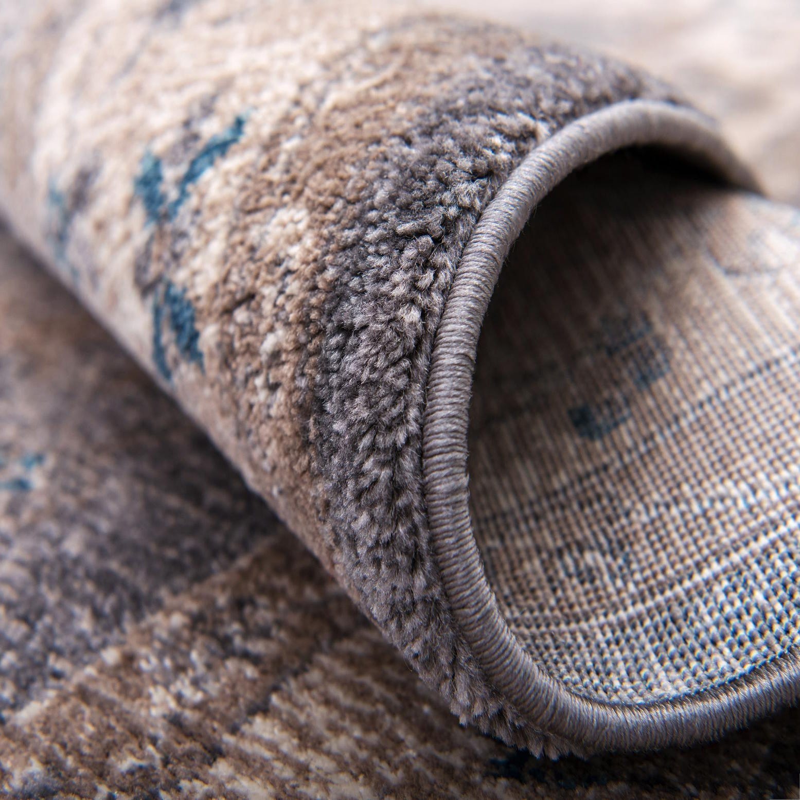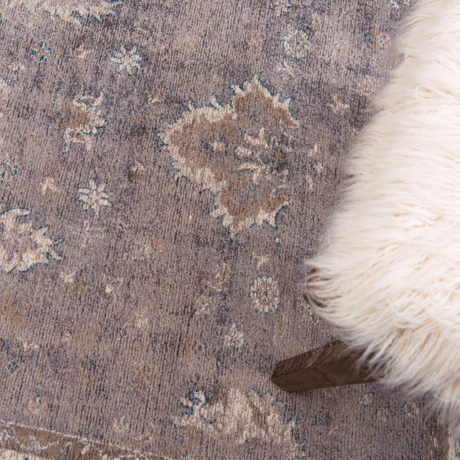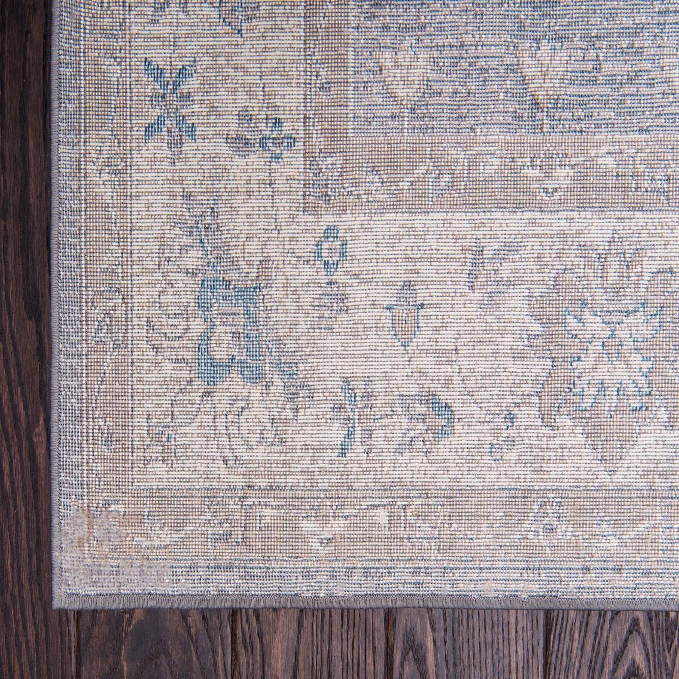 Primary color is Gray. Colors in this rug include: Gray, Beige, Light Blue.