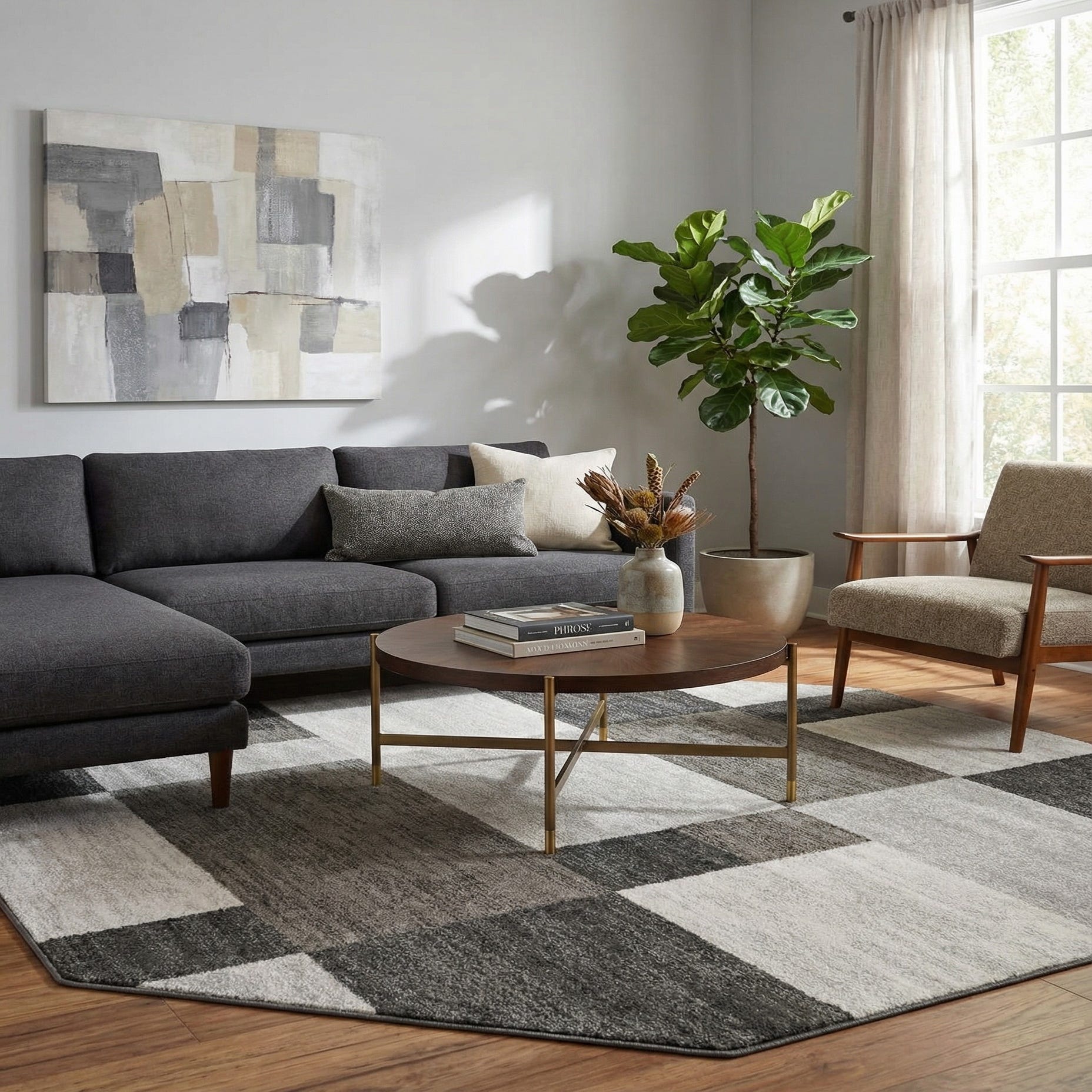 Primary color is Gray. Colors in this rug include: Gray, Black, Ivory.