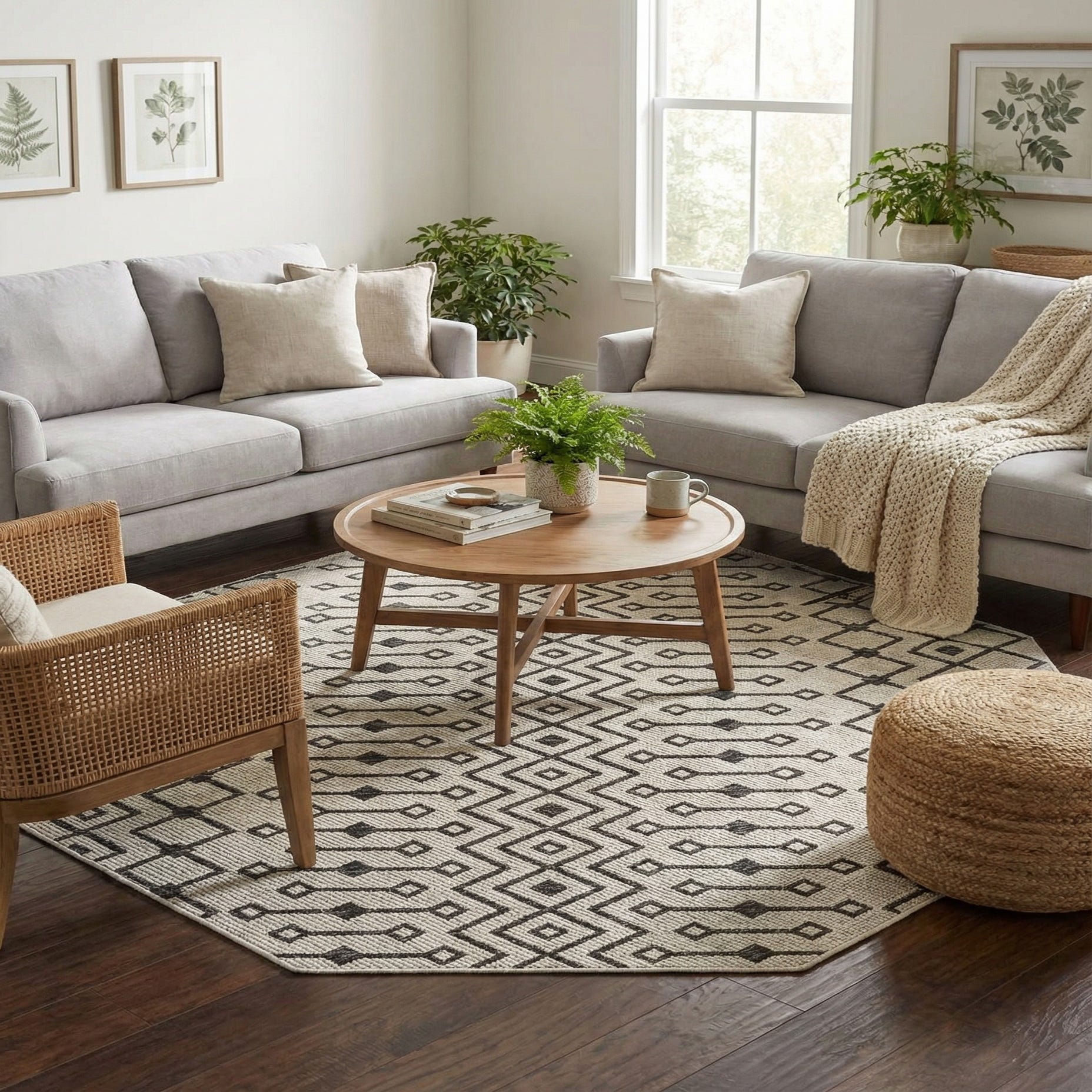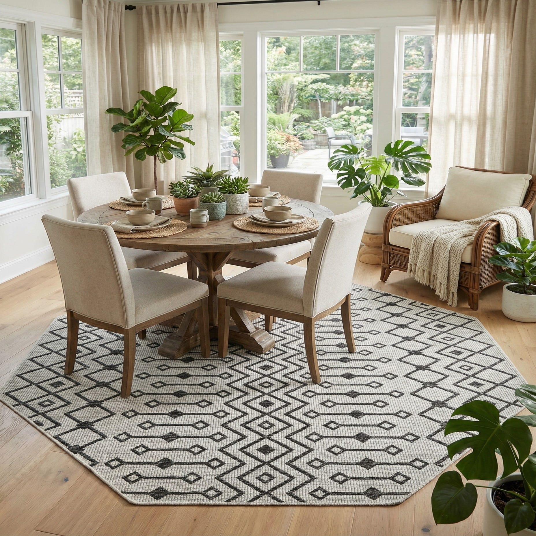 7' 10 x 7' 10 Washable Trellis Indoor / Outdoor Octagon Rug