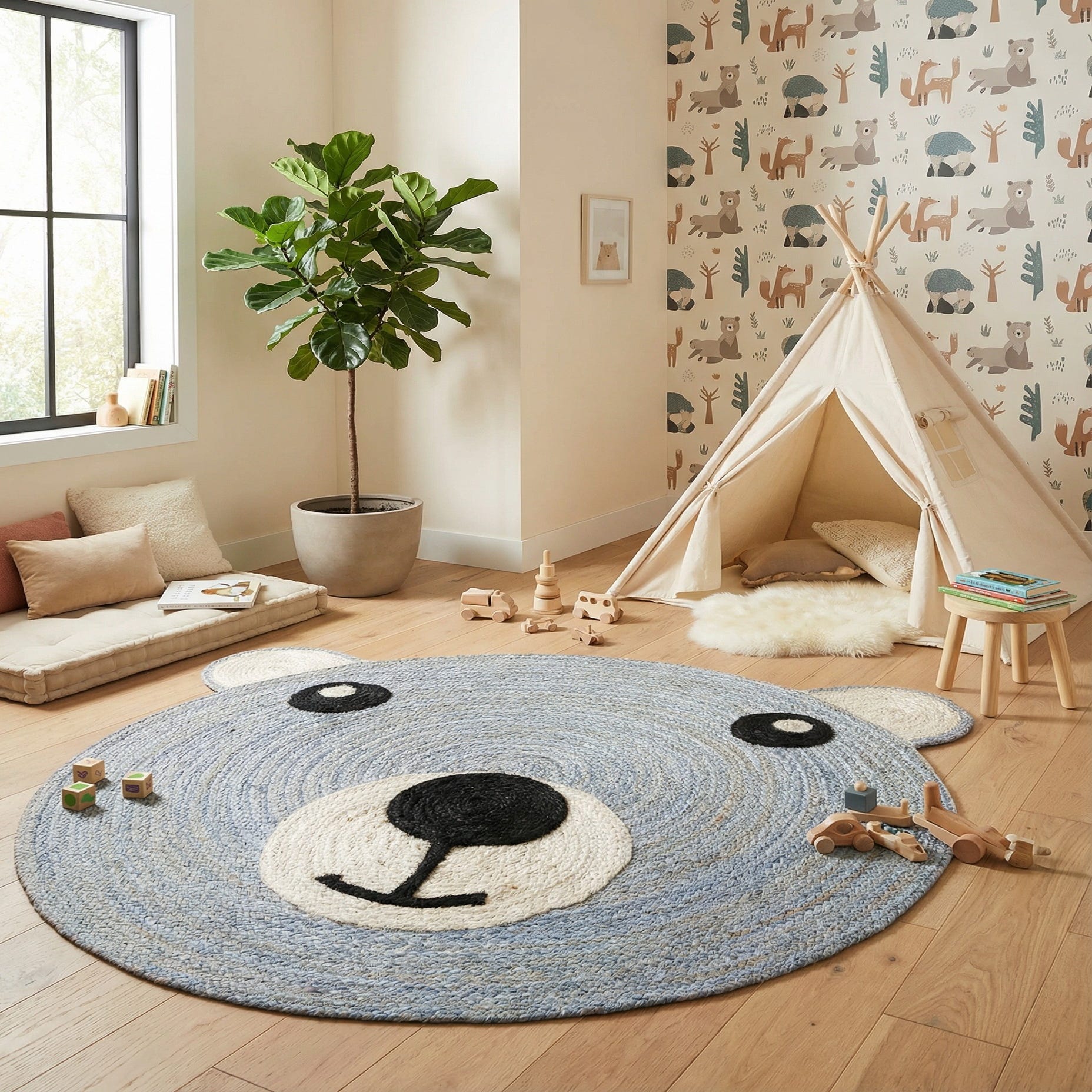 7' 10 x 7' 10 Hand Braided Kids Braided Jute Round Rug