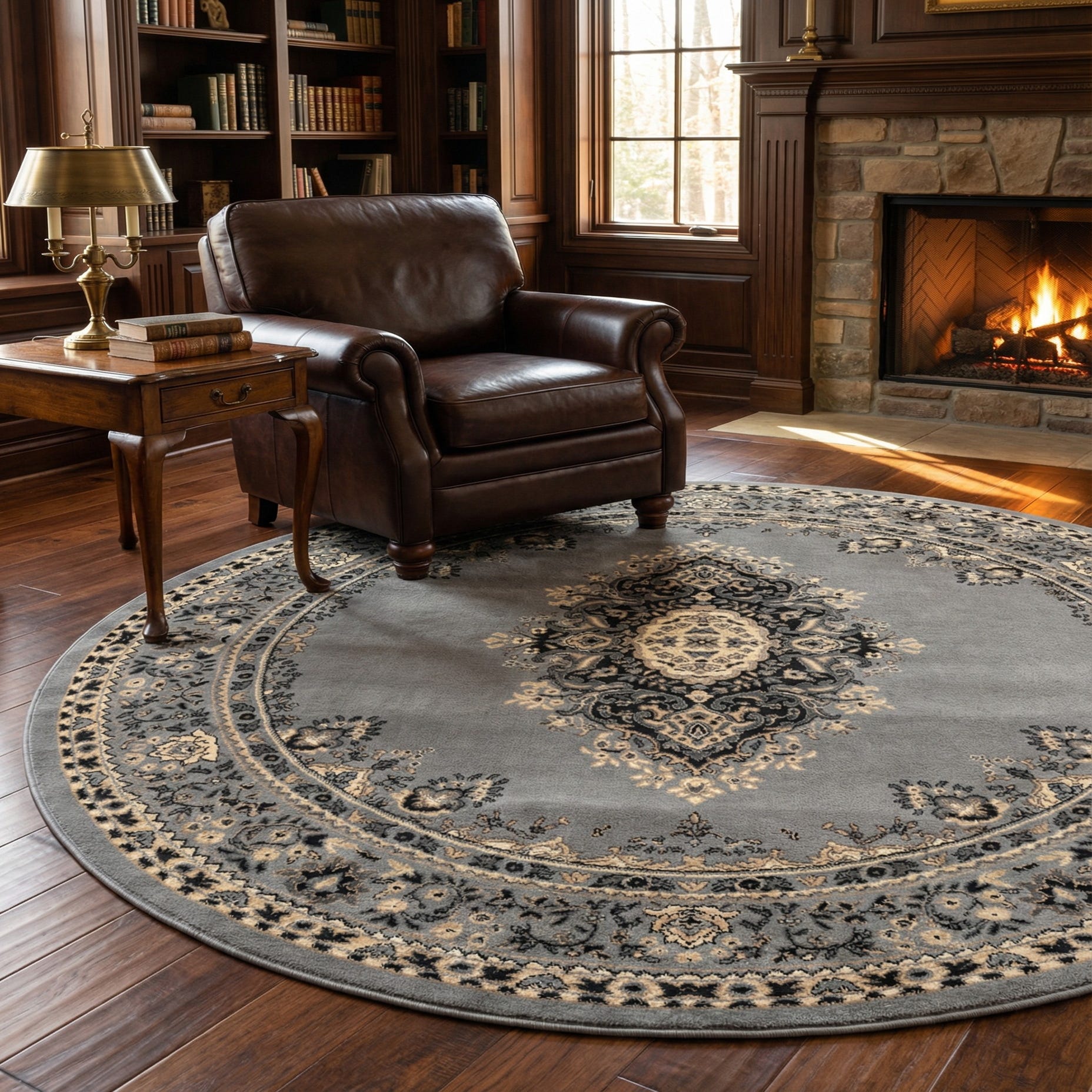 7' 10 x 7' 10 Mashad Design Round Rug