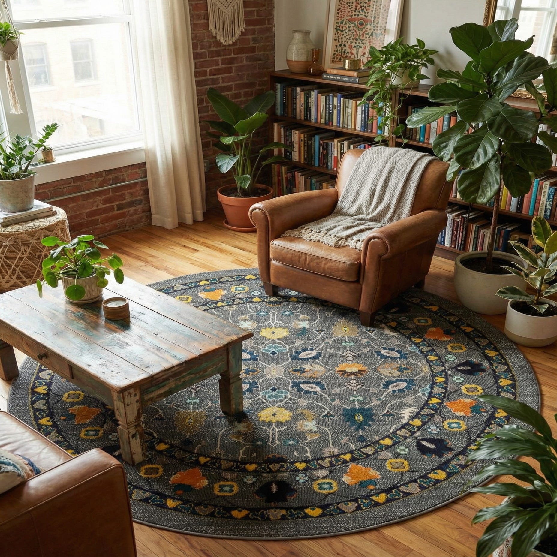 Primary image 8' x 8'  Washable Palazzo Round Rug