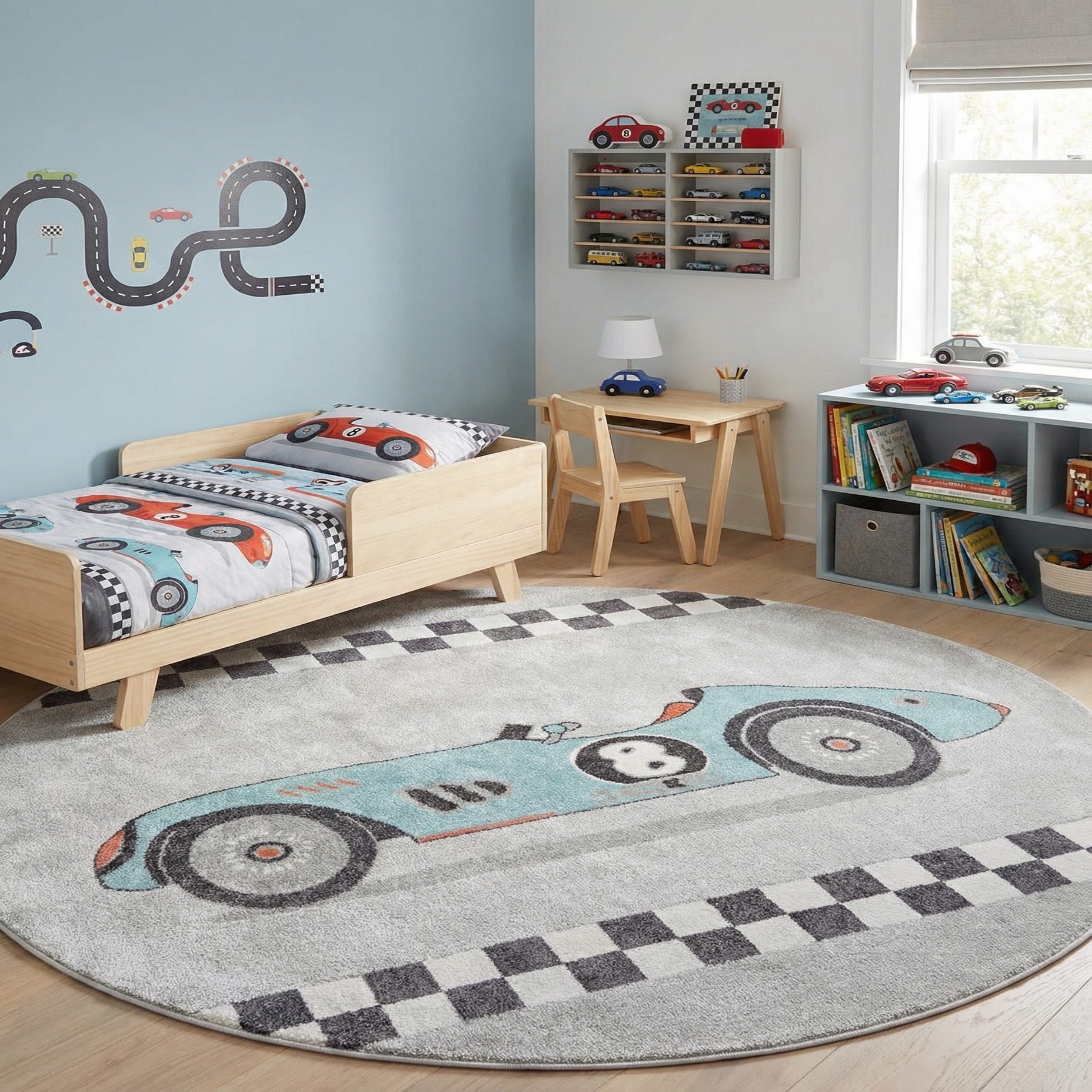 Detail image of 7' 10 x 7' 10 Racecar Whimsy Kids Round Rug