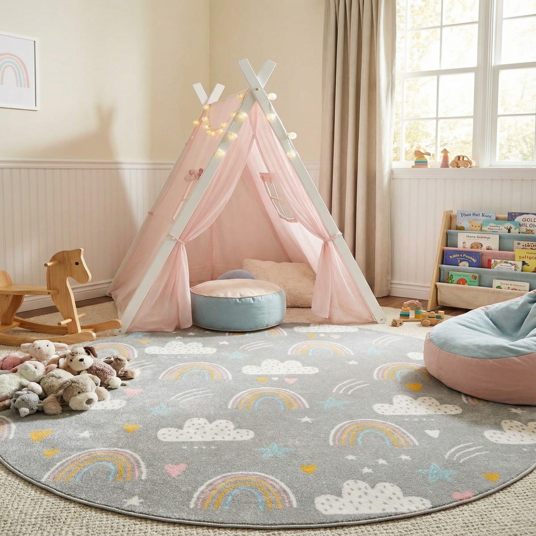 7' 10 x 7' 10 Clouds and Rainbows Whimsy Kids Round Rug