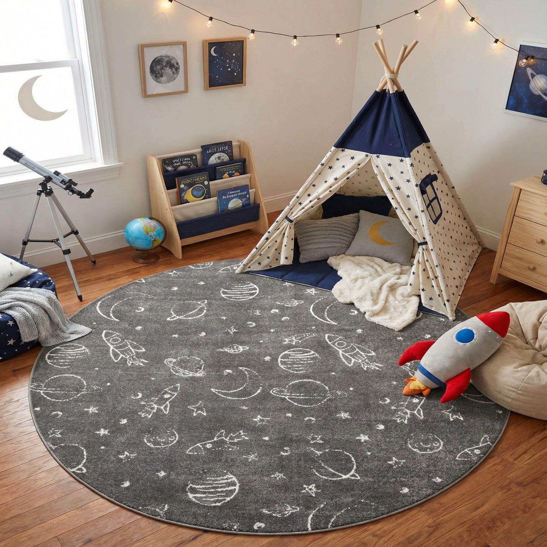 7' 10 x 7' 10 Planets Whimsy Kids Round Rug