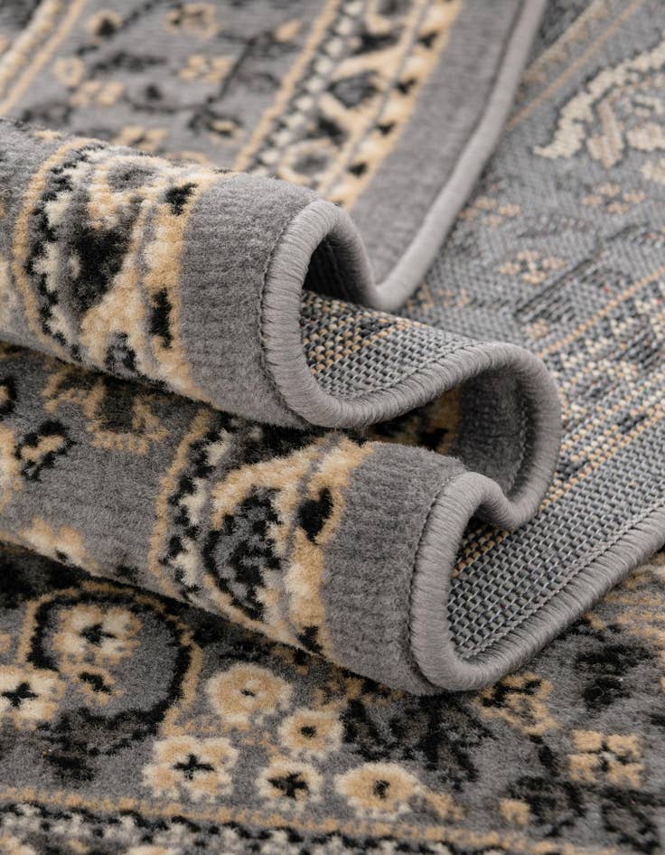 Primary color is Gray. Colors in this rug include: Gray, Black, Cream, Beige.