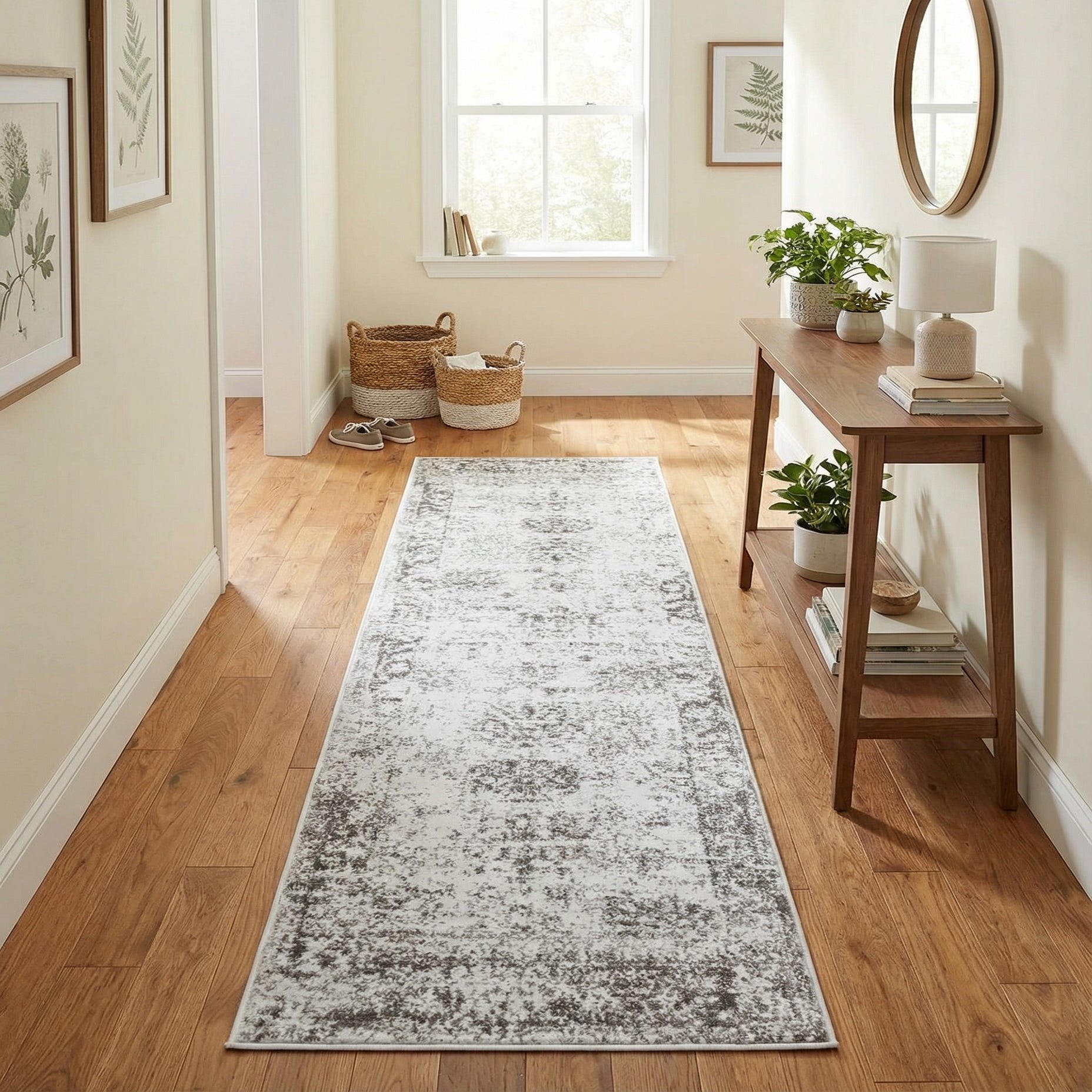 Primary color is Gray. Colors in this rug include: Gray, Beige.