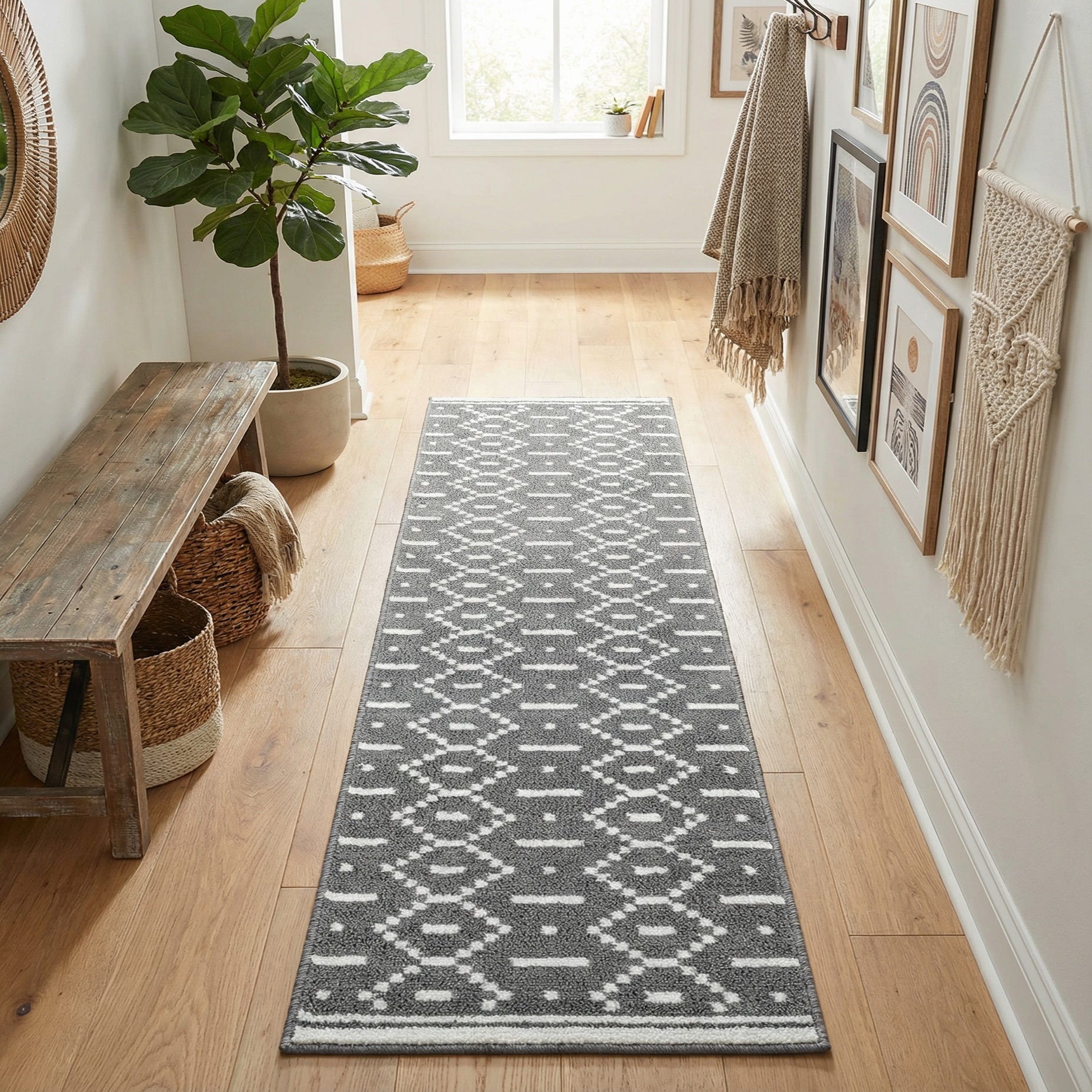 Primary color is Gray. Colors in this rug include: Gray, Ivory.